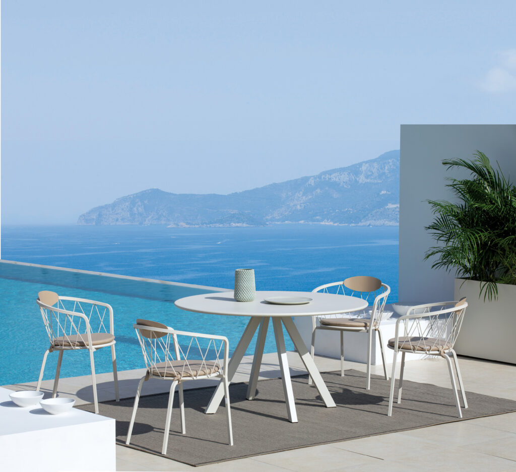 Una collezione dal gusto contemporaneo, in cui l’intreccio di forme geometriche basiche e linee essenziali crea un’ atmosfera dinamica e funzionale. Il salotto all’aperto diventa uno spazio fluido e a tratti onirico, che si integra perfettamente in ogni ambiente.