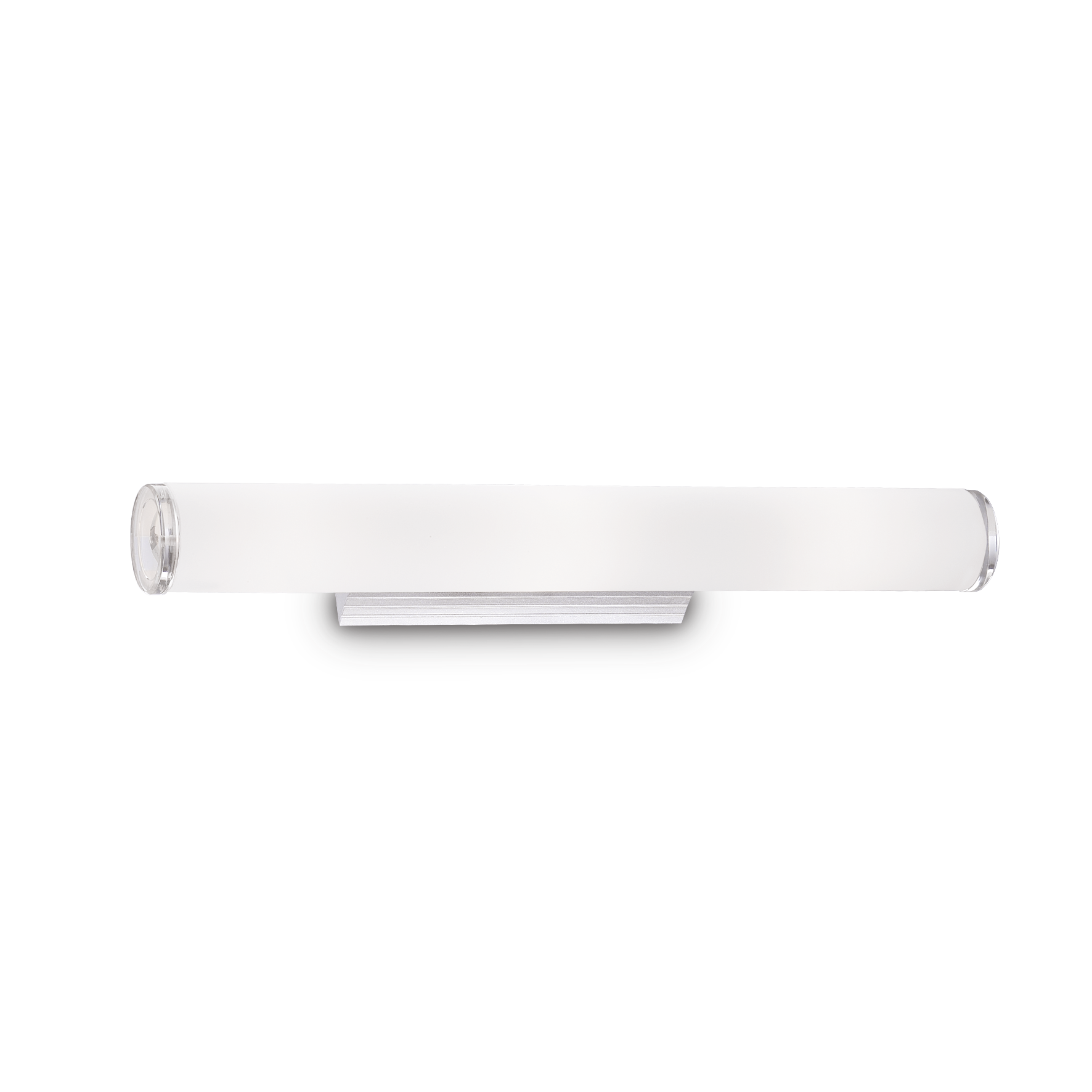 Applique da parete CAMERINO AP3 di Ideal Lux con base in alluminio. Diffusore in vetro bianco soffiato e acidato, chiuso alle estremità da dischi in materiale acrilico trasparente. Lampadine escluse.