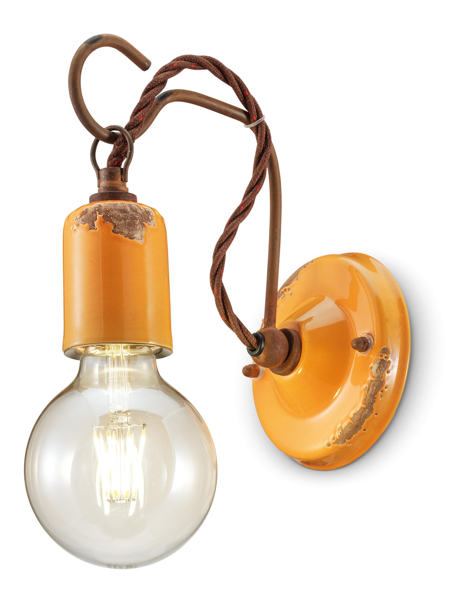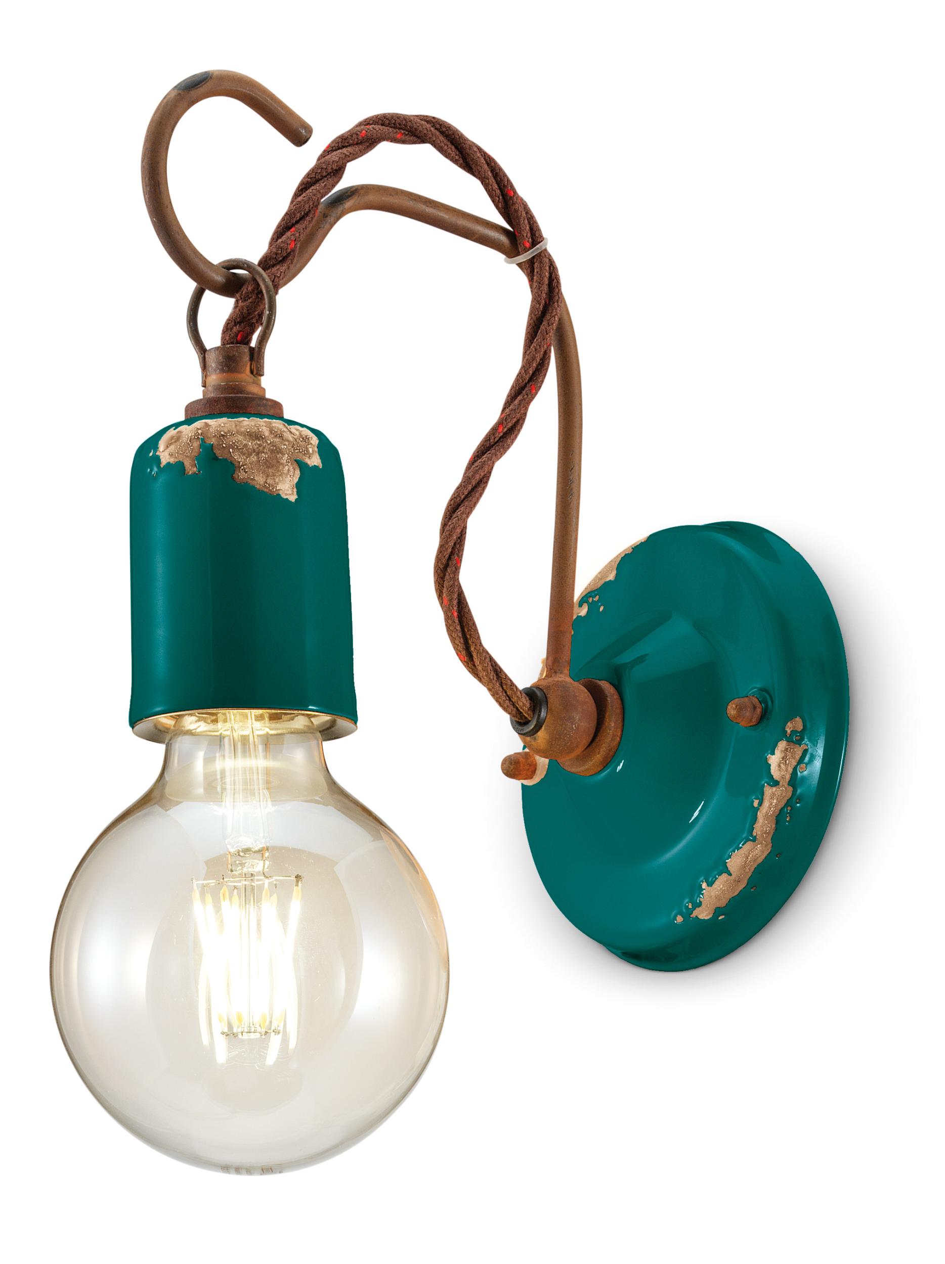 Lampada con materiale principale ceramica, cavo in cotone rivestito, montatura in ferro anticato corten.