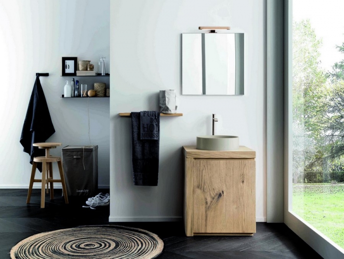 Non c’è una regola precisa sulla scelta del colore, l’importante è che siano tonalità naturali, come i materiali che danno vita all’insieme. Via libera a tappetti in fibra naturale, a scaffali in ferro e rifiniture in legno. Possiamo scegliere d'installare una vasca sotto una finestra grande e luminosa, senza tende, decorata da piastrelle lucide. Tutto deve essere lasciato così come è stato creato, senza troppi artifici.