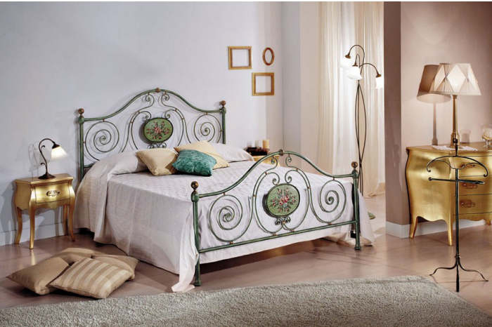 Elegante, dalle linee ricercate e dal design che incanta, il letto matrimoniale Ginevra in ferro battuto idealizza l'estetica classica rendendola alla portata di tutti, ma sempre con stile. Un letto di prestigio caratterizzato dal bellissimo medaglione realizzato a mano che riporta un disegno di rose delicate. Decorazione che si ripete anche sulla pediera nella versione del letto "testata con pediera". Le linee curve lo rendono inimitabile e il vero protagonista della camera. Disponibile in diverse versioni e in numerose colorazioni a scelta.