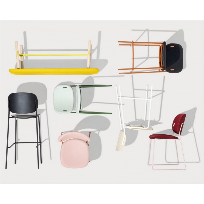 È disponibile nella versione impilabile per 4 pezzi e non impilabile e nel modello con gambe slitta. Il suo design semplice e la combinazione dei diversi materiali e colori la rende perfetta per un soggiorno di tendenza.
