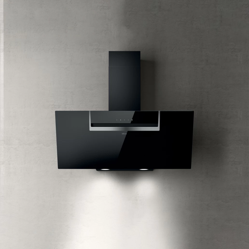 Cappa a parete estremamente lineare disponibile nella versione in vetro nero. Illuminazione a led e touch control si associano a una notevole potenza aspirante.