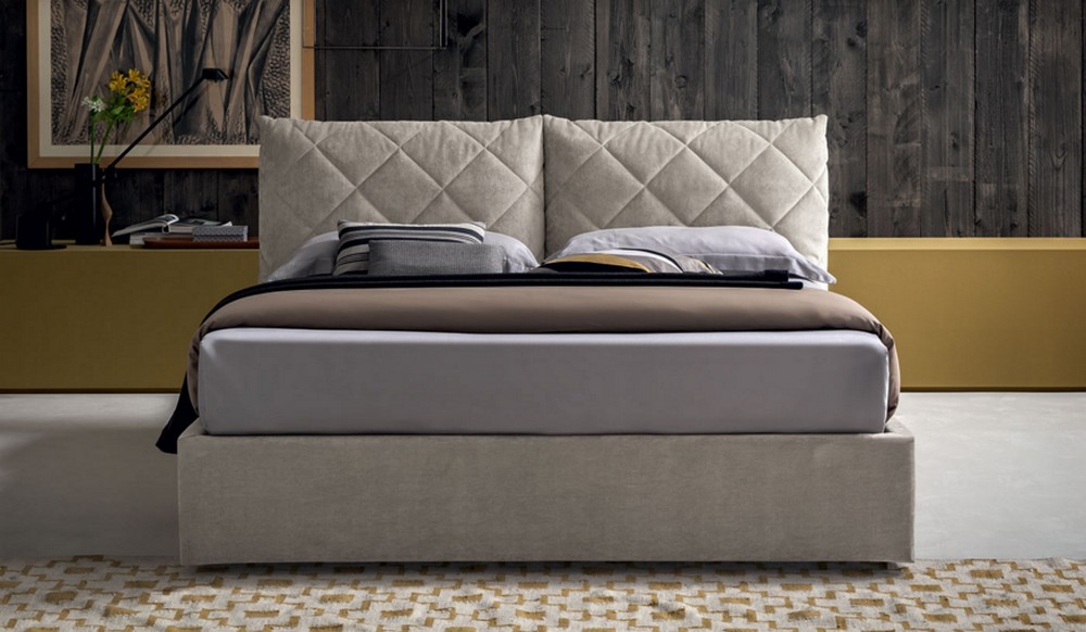Allison ist ein komplett herausnehmbares Bett, das mit Stoff oder Kunstleder bezogen ist. Die großen weichen Kissen werden durch rautenförmige Steppungen bereichert, ein klassisches Zitat für ein modernes Bett. Die Kissen sind mobil, unabhängig und können in einer entspannten Position auf die Matratze gelegt werden, bequem zum Lesen, Fernsehen, Tablet. Allison ist in folgenden Ausführungen erhältlich: Einzelbett, Queensize-Bett, Doppelbett und für jede Größe gibt es verschiedene Varianten: Bett mit Festbett, Bett mit "Dynamic" -Mechanismus, Bett mit "Maverick" -Mechanismus. (siehe technisches Datenblatt). Die Füße des Bettes sind wengefarben und 3 cm hoch.