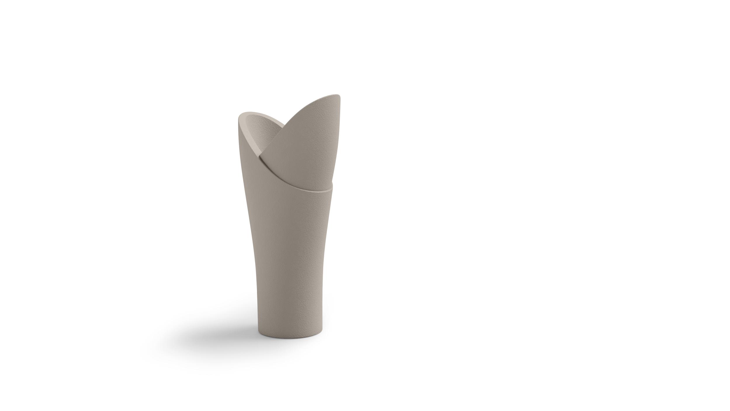 Diese Vase ist für den Einzeleinsatz gedacht, wo sie ihre schlichte, klare Eleganz allein oder in Kombination mit den anderen beiden Größen und verschiedenen verfügbaren Farben zur Geltung bringt. Zusammen ergeben die Vasen eine harmonische Komposition, die jedem Raum Tiefe und optische Attraktivität verleiht.