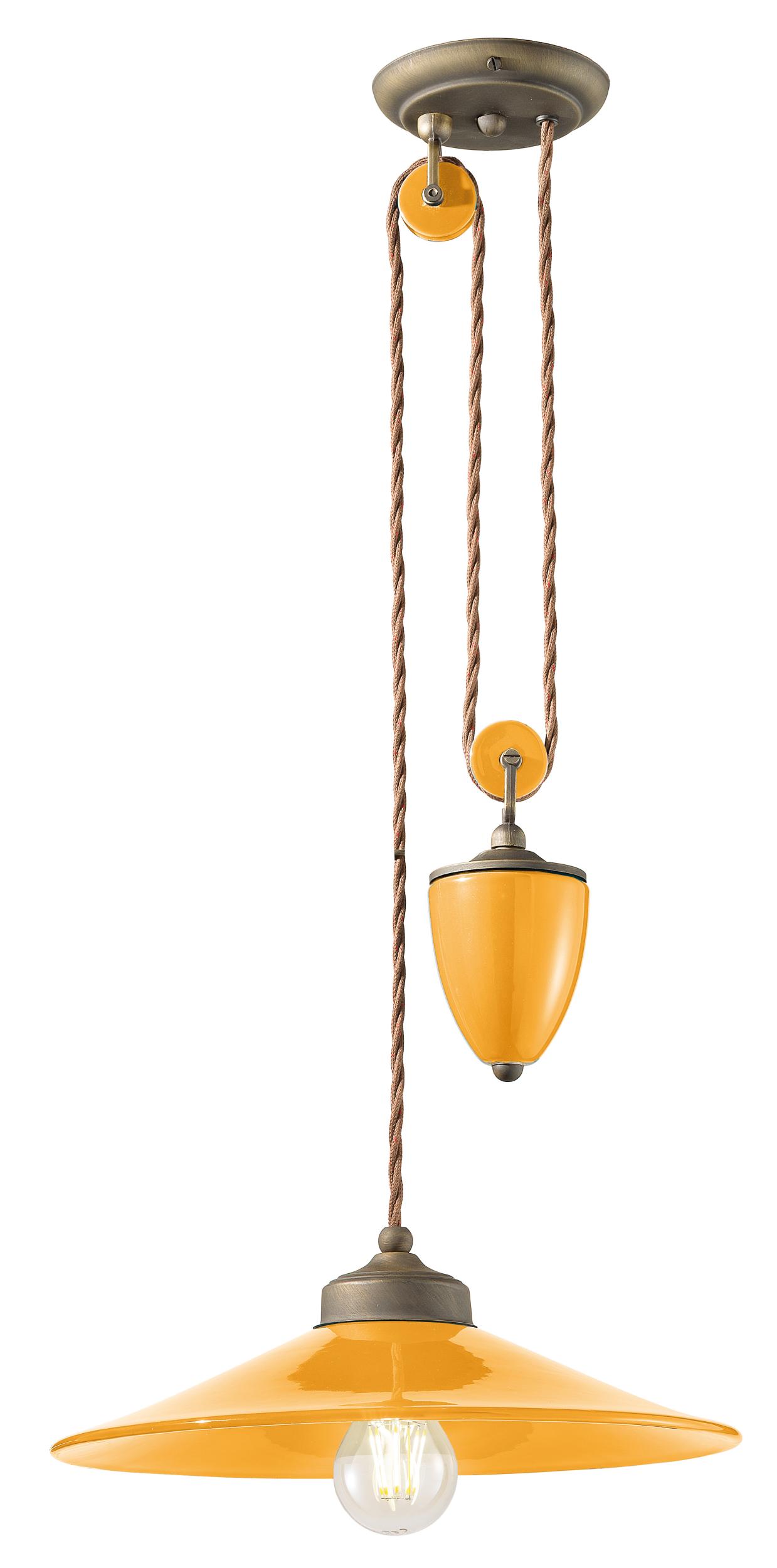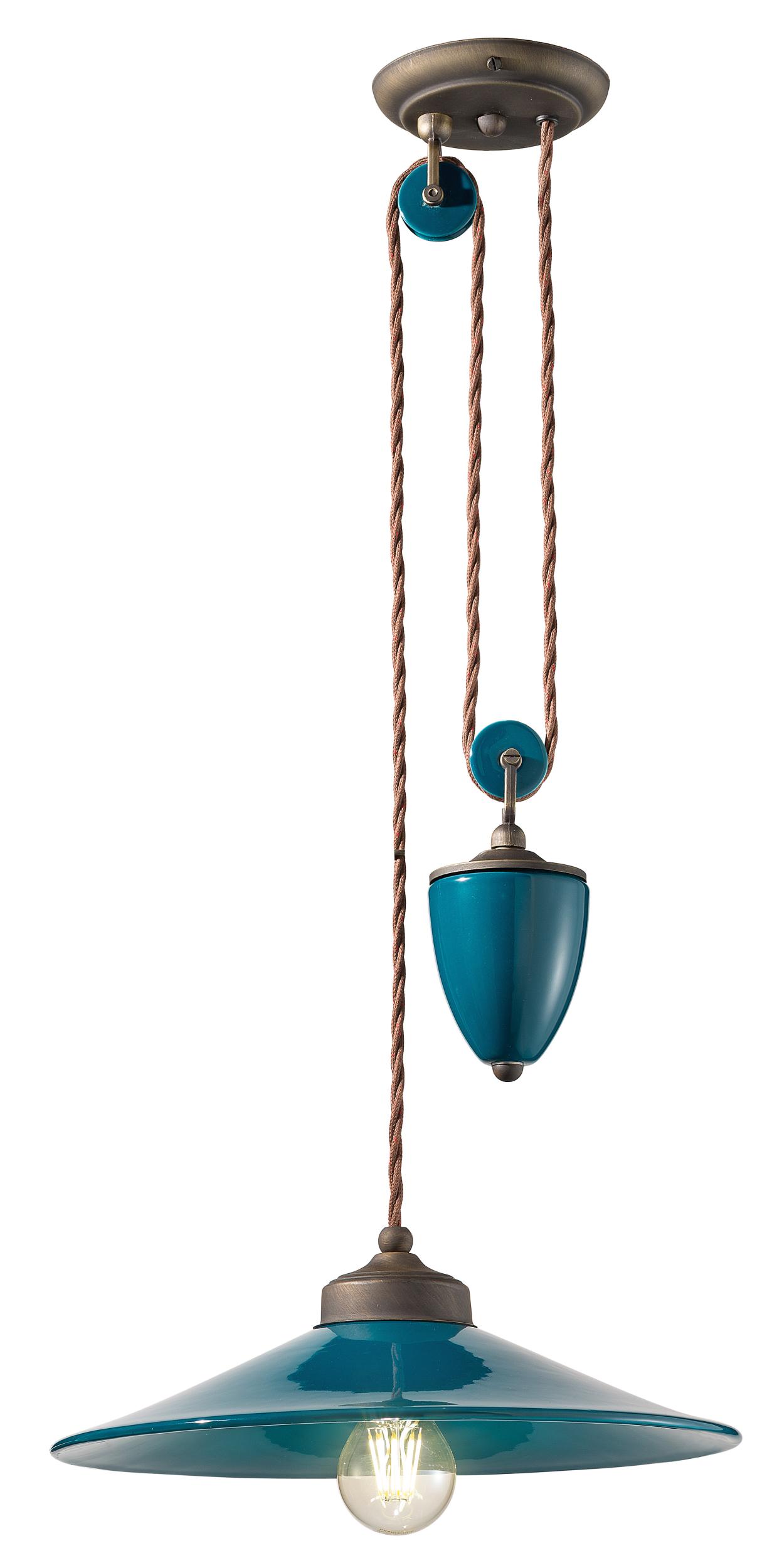 Hängeschiene D.35 RETRO' COLORS C1632 von Ferroluce mit Hauptmaterial: Keramik, ummanteltes Baumwollkabel, Metallteile aus satiniertem Messing, Lackierungsart: Brünieren und Sprühlackieren.