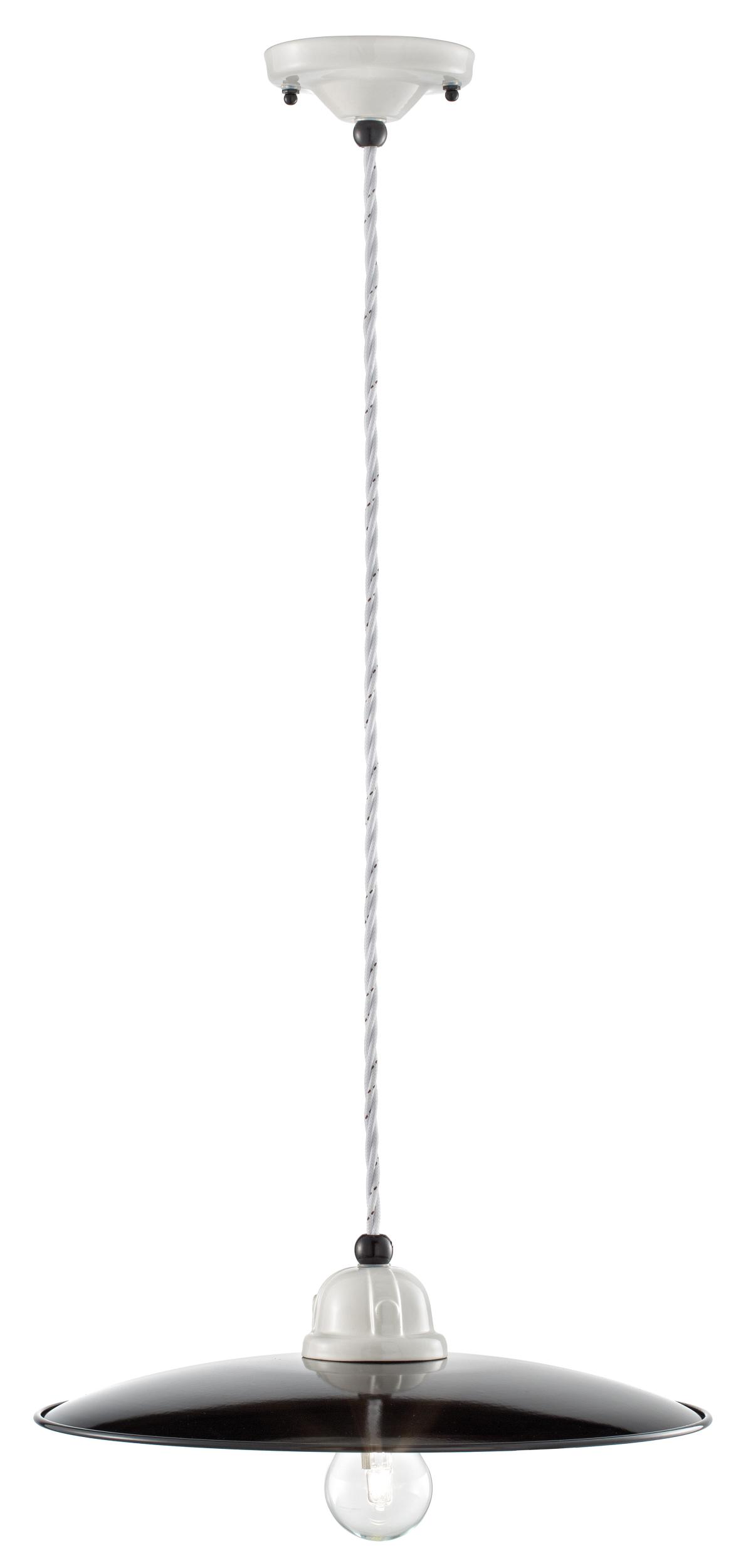 Hängeleuchte D.35 RETRO' B&W C1612 von Ferroluce mit Keramik-Befestigungsrosette, ummanteltem Baumwollkabel, Messing-Metallteilen, Eisenplatte, Art der Lackierung: Pulver.