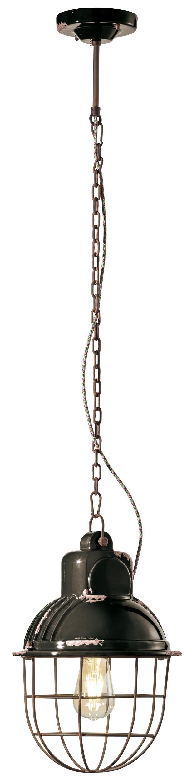 Das Metallgitter zum Schutz des Leuchtenkörpers macht die antike Keramiklampe ideal für Wintergärten oder Räume, die an die Gewächshäuser des frühen 20. Jahrhunderts erinnern.