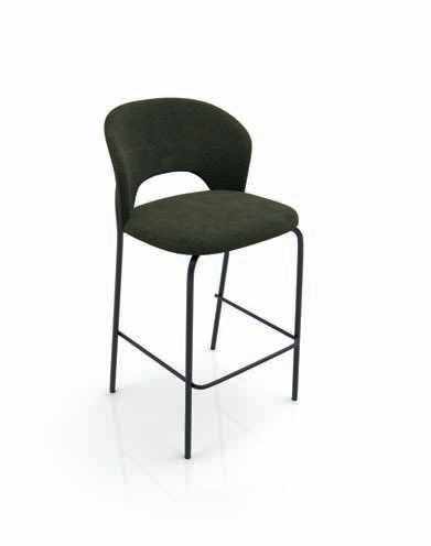 Babylon C Hocker von Zamagna. Hocker mit lackiertem Metallrahmen, Sitz und Rückenlehne aus Sperrholz mit Bezug in verschiedenen Materialien und Farben.