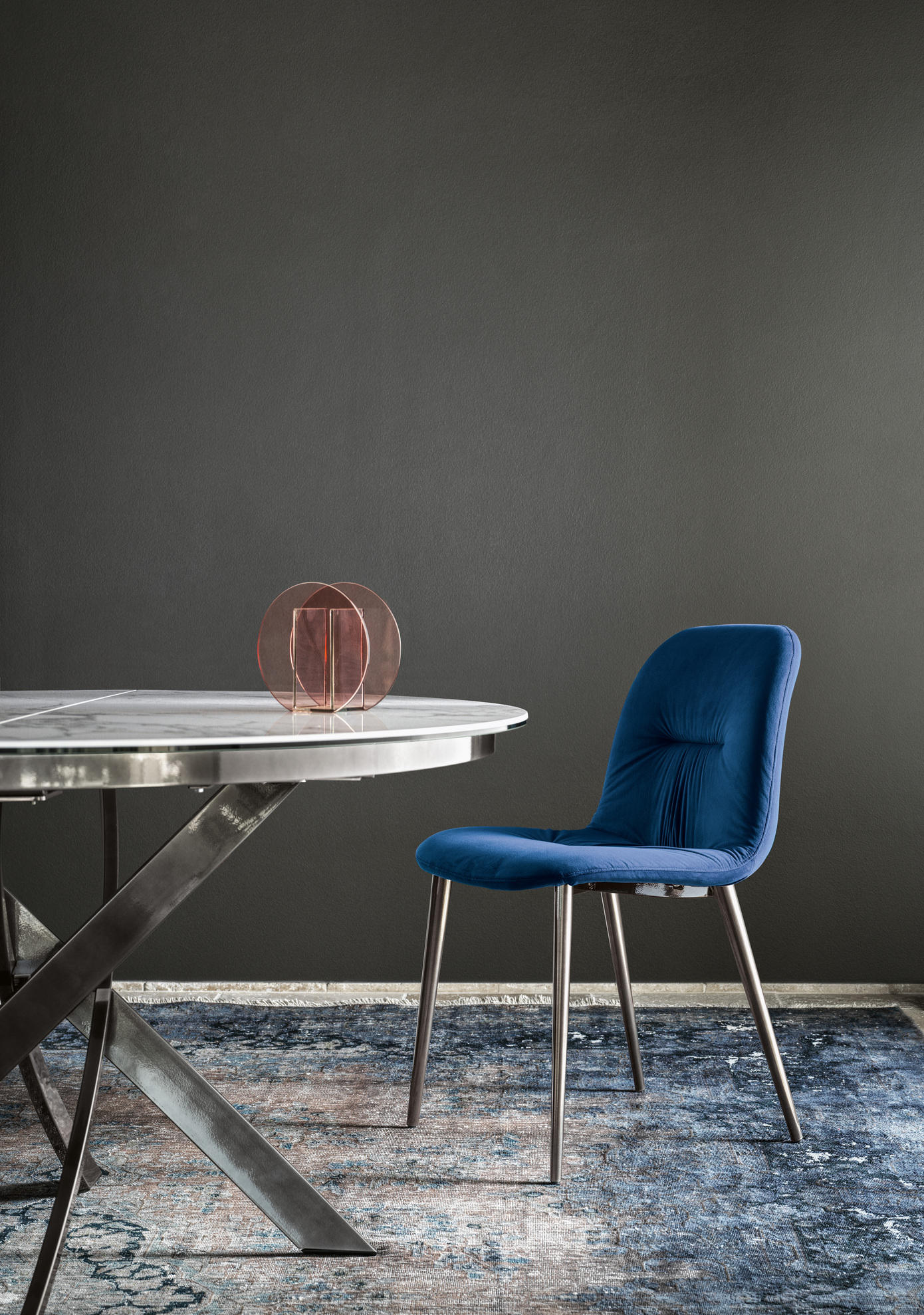Der Tisch Barone besticht durch sein modernes, raffiniertes und elegantes Design. Die markante Kreuzung seiner vier Beine verleiht ihm perfekte Stabilität und macht ihn zur idealen Ergänzung für Ess- und Wohnzimmer. Das Tischgestell ist aus lackiertem Stahl gefertigt und in verschiedenen Farben erhältlich: Aluminium, Weiß, Sand, Dunkelbraun, Anthrazit, Schwarz, Multicolor Elegant, Chrom, Natursilber, Gold oder Hochglanz-Tiefschwarz. Die Tischplatte ist in einer Vielzahl von Materialien und Oberflächenausführungen verfügbar.