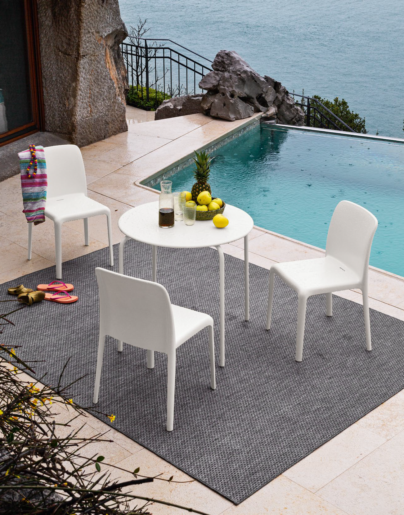 Bayo CB1983 Stuhl von Connubia. Polypropylen-Monocoque, hergestellt mit Air-Moulding-Technologie, das gleichzeitig Leichtigkeit und Festigkeit bewahrt. Der Kontrast zwischen ausdrucksstarkem Design und abgerundeten Ecken betont die leicht konisch zulaufende Rückenlehne. Geeignet sowohl für den privaten als auch für den Objektbereich. Der Bayo-Stuhl ist auch für den Außenbereich perfekt geeignet und lässt sich sechsfach stapeln. Austauschbare Füße.
