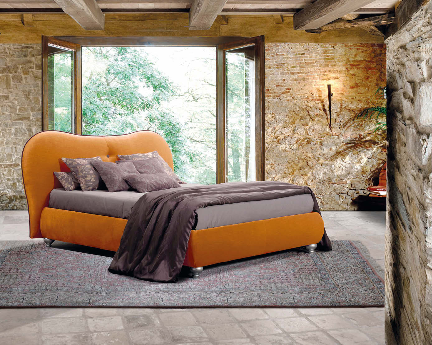 Doppelbett Bernadette von Lettissimi, ein Klassiker mit geschwungenen Formen und unverwechselbarem Stil mit wertvoller handwerklicher Verarbeitung, die es einzigartig macht. Erhältlich in zwei Versionen: mit Bettrahmen H. 14 und mit Bettrahmen H. 22. Große Auswahl an Stoffen und Öko-Leder für die Polsterung und Möglichkeit der Version mit Container mit zwei verschiedenen Öffnungsarten: Standard oder patentierter Doppellift.