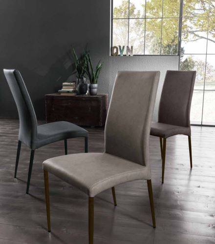Bond-Stuhl von Zamagna mit in verschiedenen Farben lackierter Stahlstruktur und gepolstertem Sitz, bezogen mit verschiedenen Materialien und Ausführungen, erhältlich in mehreren Farben.