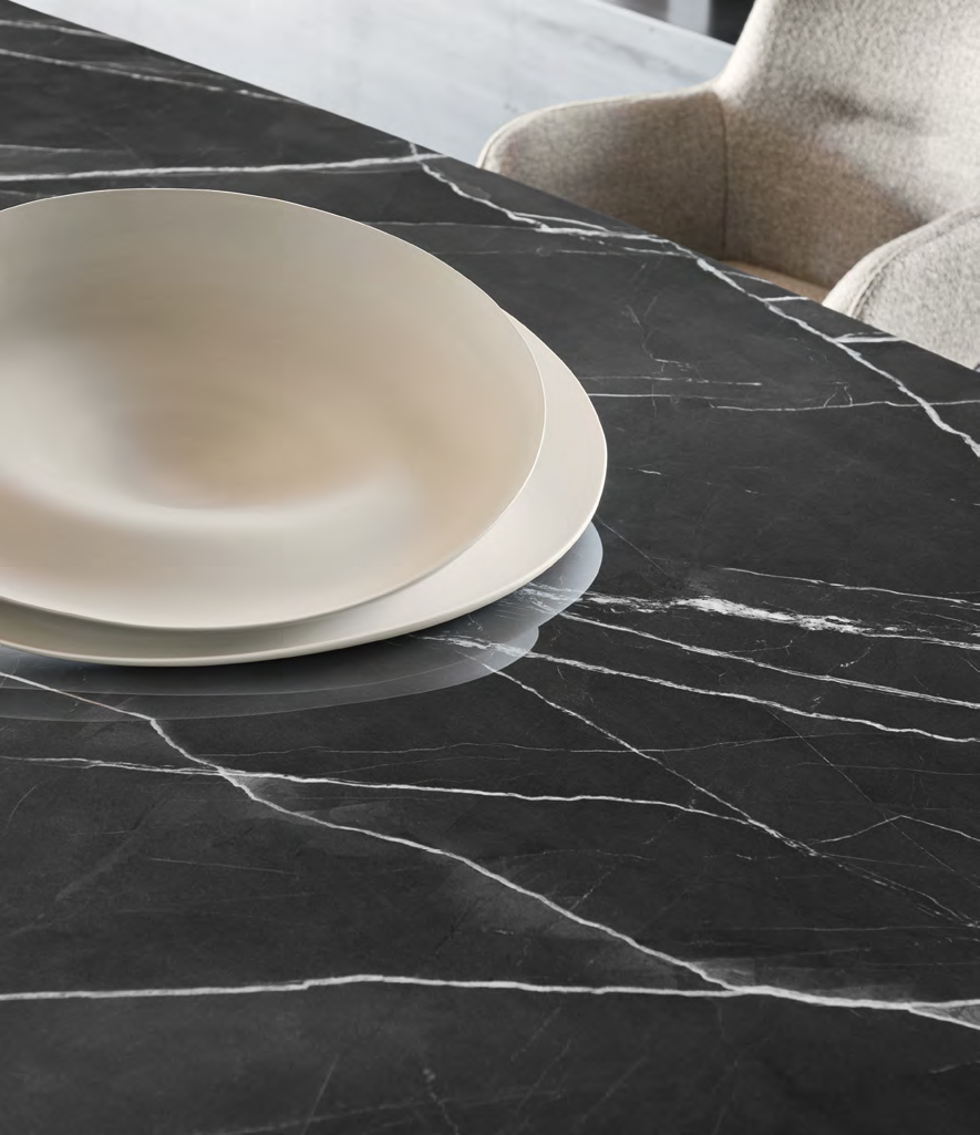 Der Tisch Breeze von Calligaris ist ein fester Tisch. Das Design von Breeze ist unverwechselbar. Dank des geformten Blechgestells, in dem sich zwei organisch geformte Elemente wie in einem Kunstwerk oder einer optischen Täuschung kreuzen, entsteht das Symbol der Unendlichkeit. Mit Tischplatte aus gehärtetem Glas oder Keramik ist Breeze eine elegante Ergänzung für moderne Esszimmer.