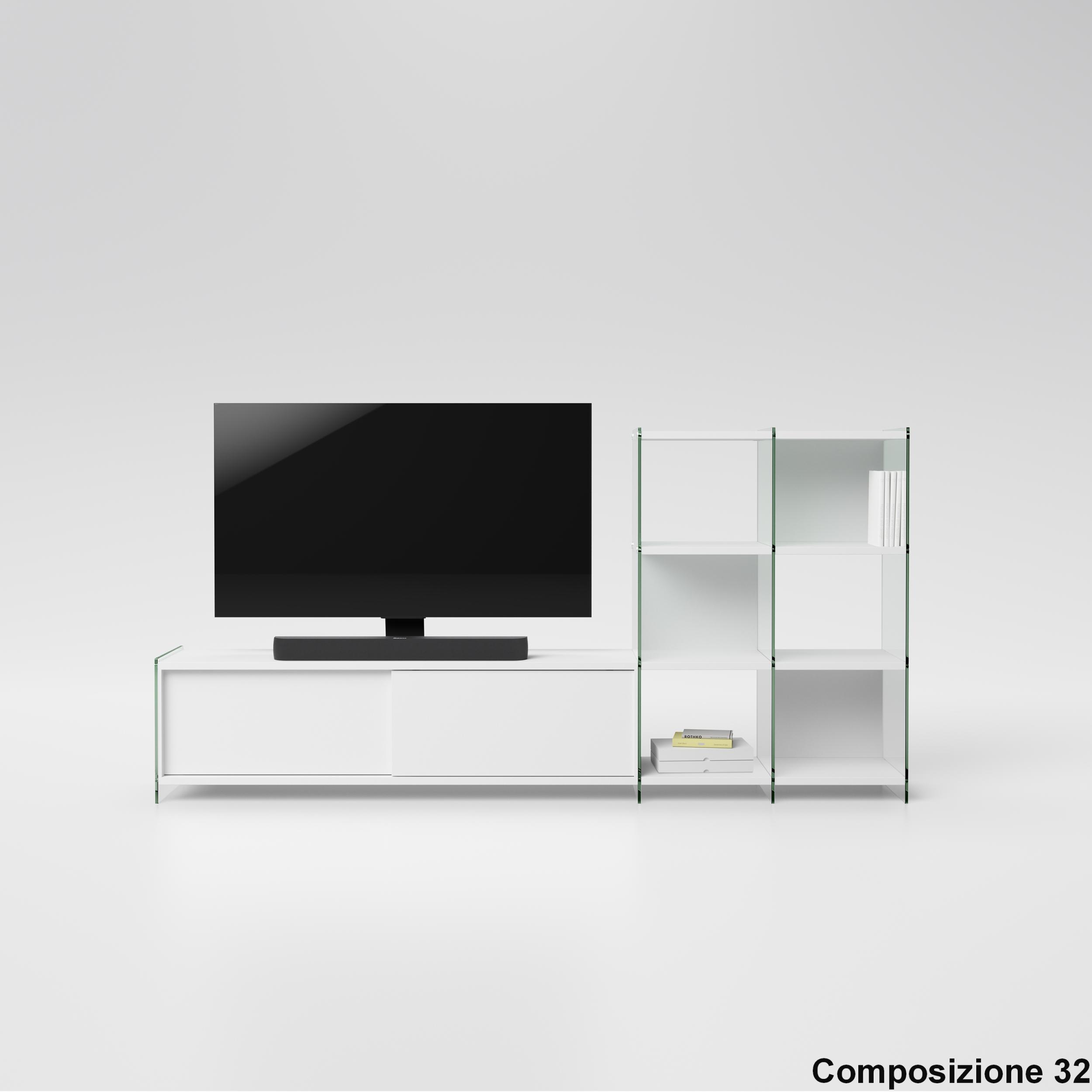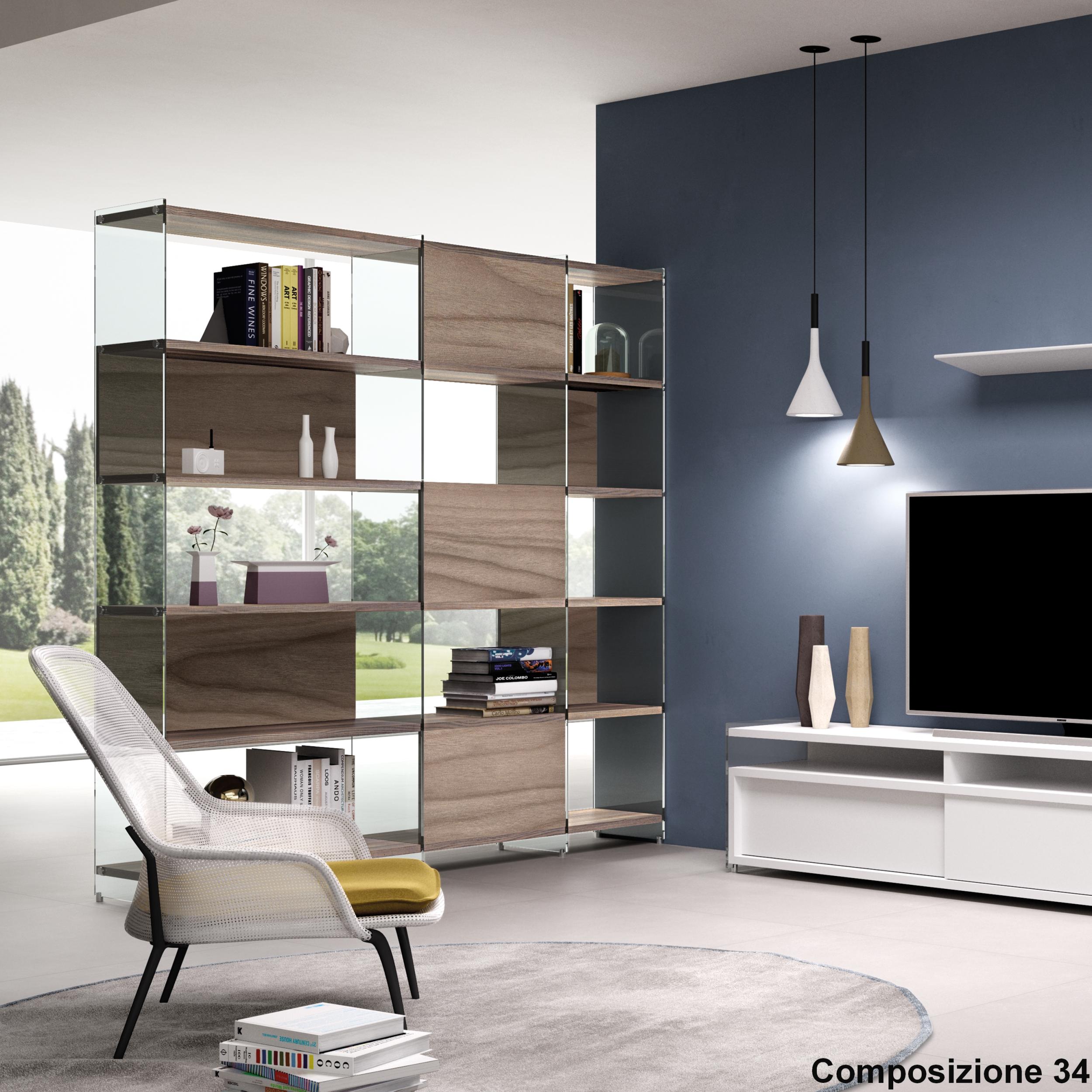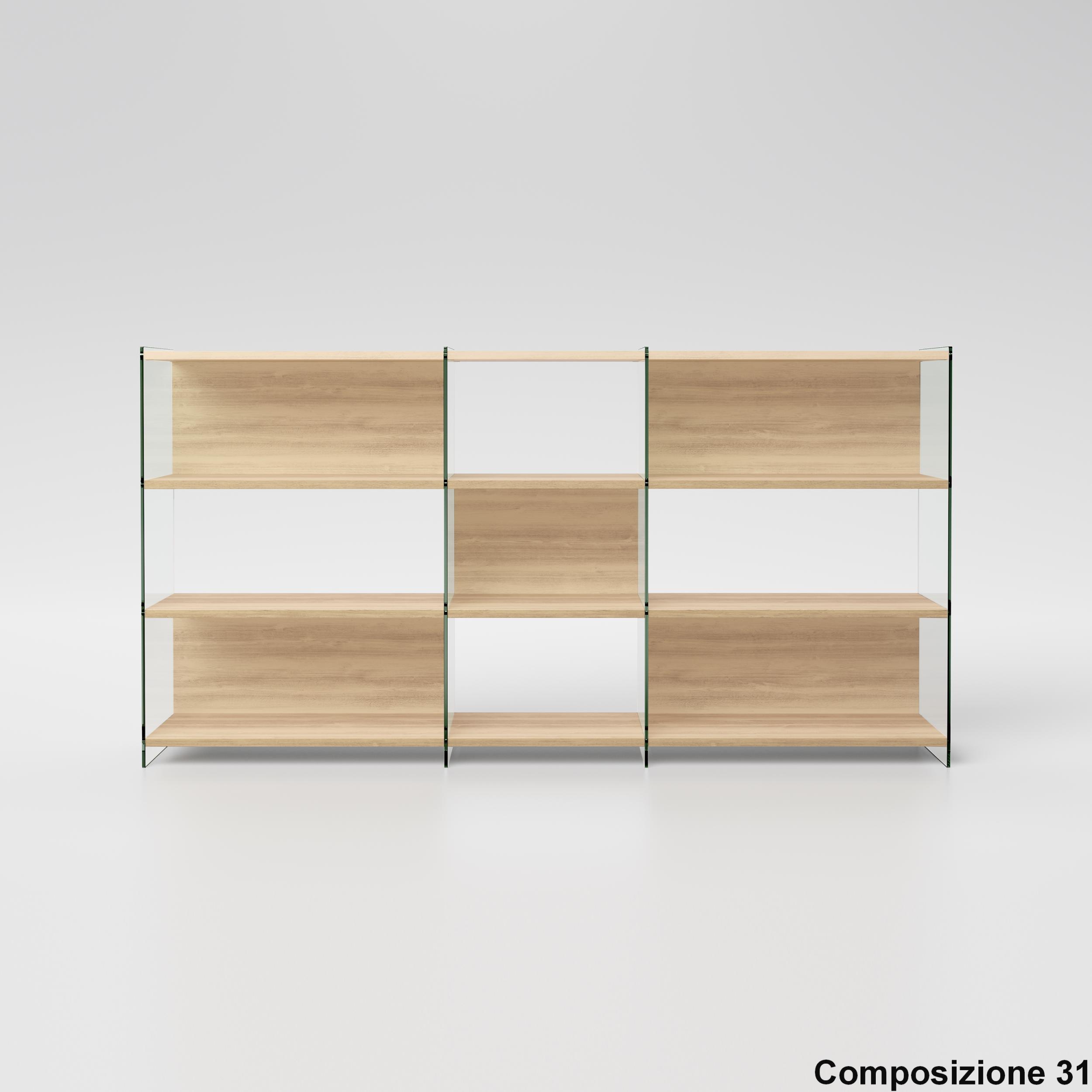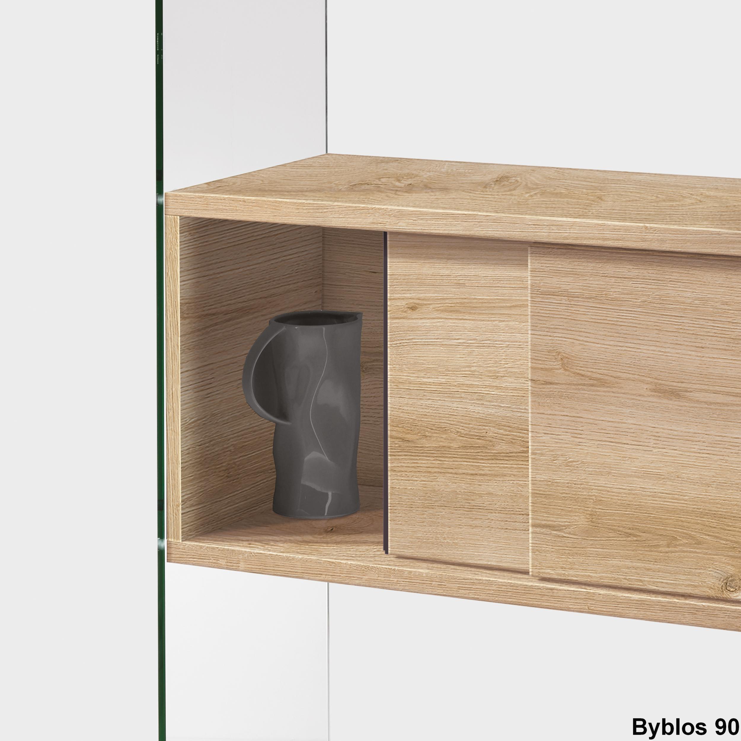 Das modulare Bücherregal Byblos eignet sich ideal für die Raummitte, um Bereiche in Wohnräumen, Eingangsbereichen, Fluren etc. zu strukturieren. Die Regalböden und Rückwände sind beidseitig perfekt verarbeitet und können wahlweise vorne oder hinten, sogar abwechselnd, montiert werden. Das Design zeichnet sich durch die Transparenz der Seitenteile aus gehärtetem Glas in Klarglas oder Rauchglas aus, die dem freistehenden Bücherregal eine elegante und zugleich leichte Optik verleihen. Offene Regalböden und Schiebetüren aus 25/18 mm starkem, umweltfreundlichem Laminat vervollständigen die Konstruktion. Lassen Sie sich nicht von der Leichtigkeit des transparenten Glases täuschen: Es ist deutlich stabiler und robuster als ein Standard-Bücherregal mit Laminat-Seitenteilen. Das 10 mm starke Sicherheitsglas ist extrem widerstandsfähig, und das Bücherregal hat eine hohe Tragkraft: Jeder Regalboden ist für eine maximale Belastung von 20 kg zertifiziert. Ein komplettes, höhen- und breitenverstellbares System, mit dem Sie durch die Kombination der verschiedenen Komponenten die für Ihre Bedürfnisse optimale Komposition gestalten können.