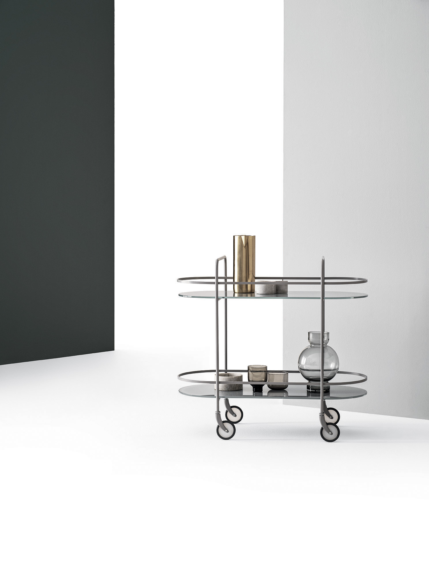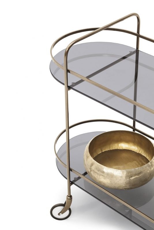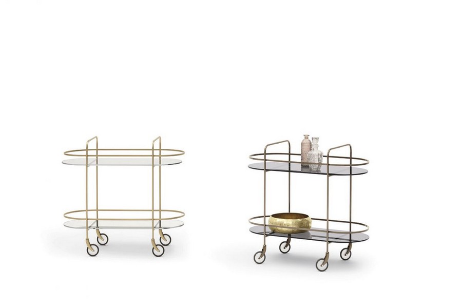 Chic Speisewagen von Bontempi mit Rädern in modernem, schlichtem Design mit leichter Linie, die Struktur ist aus lackiertem Stahl, die beiden Regale sind in zahlreichen Ausführungen erhältlich und er bewegt sich mit den Rädern. Chic ist die bequeme und praktische Einrichtungsergänzung oder das Accessoire.