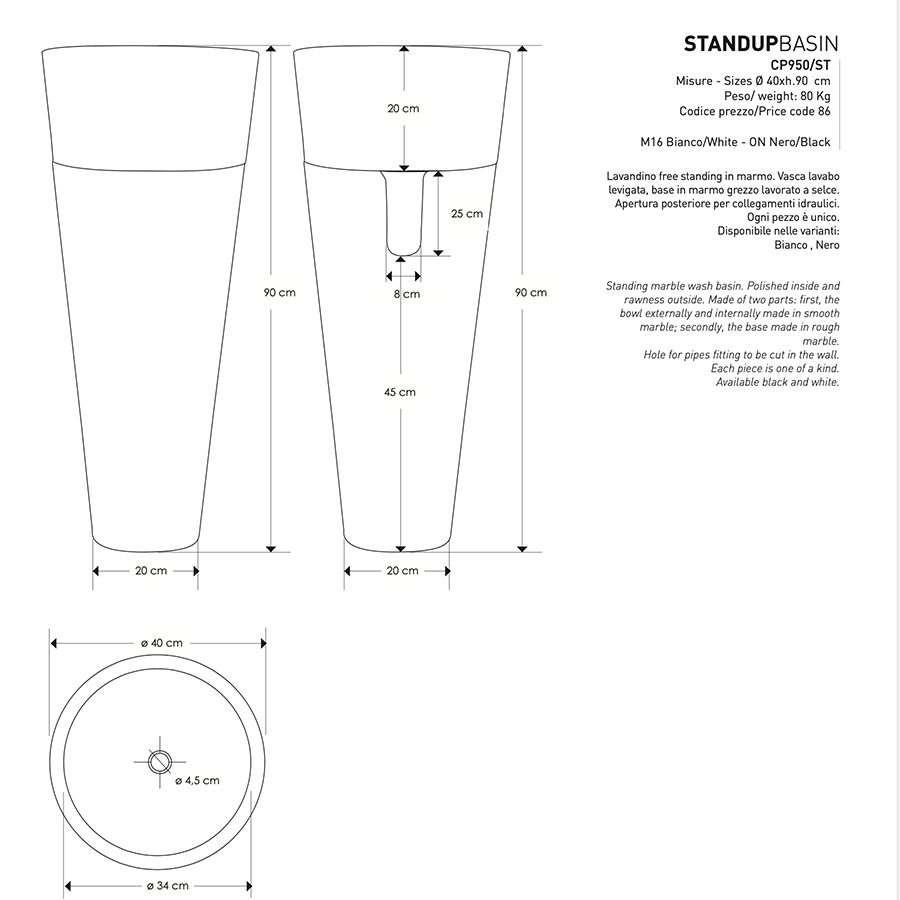 Kollektion freistehender Waschbecken aus Naturmarmor. Der Sockel ist in Rohform gehalten, um die wunderbare Farbvielfalt des Materials hervorzuheben, während das Waschbecken perfekt poliert ist, um die Maserung des Marmors hervorzuheben. Stand Up ist luxuriös und essentiell und eignet sich hervorragend sowohl für Umgebungen, die „auf der Suche nach Platz“ sind, als auch für Designer-Badezimmer, die nach essentiellen Formen und Materialien suchen.