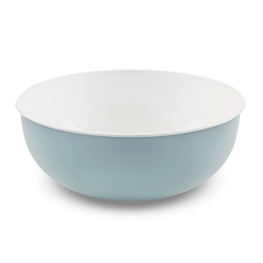 Offenes Waschbecken aus mattfarbenem Metall außen und weiß emaillierter Innenseite.