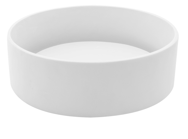 Quadratisches Aufsatzwaschbecken aus Harz, Mineralpulvern und Pigmenten mit Ablaufabdeckplatte. Kleine Unvollkommenheiten sind ein Zeichen für eine rein handwerkliche Verarbeitung. Erhältlich in Weiß und Elefantengrau.