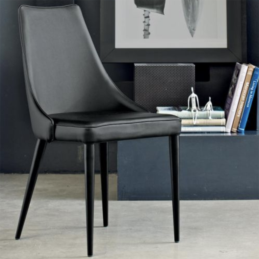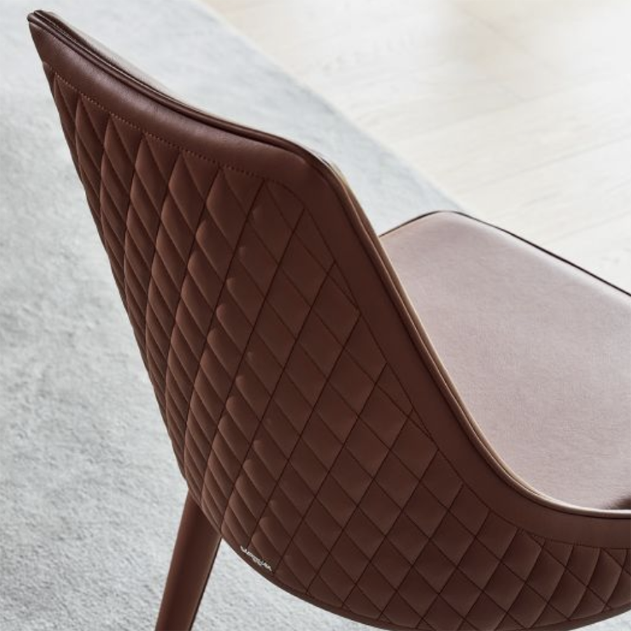 Der Clara-Stuhl ist in der vollständig gepolsterten und gepolsterten Version oder mit freiliegenden Beinen aus lackiertem Stahl erhältlich. Für die Bespannung stehen zahlreiche Ausführungen mit passenden oder kontrastierenden Kedern zur Auswahl. Die weichen Linien und das elegante Design im Retro-Stil, neu aufgelegt in einem modernen Ton, machen Clara perfekt als Ergänzung zu Esstischen oder zur Platzierung in Räumen mit einem schlichten und raffinierten Stil.