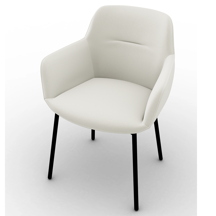 Sessel mit umhüllendem Monocoque aus kaltgeschäumtem Polyurethan niedriger Dichte.
