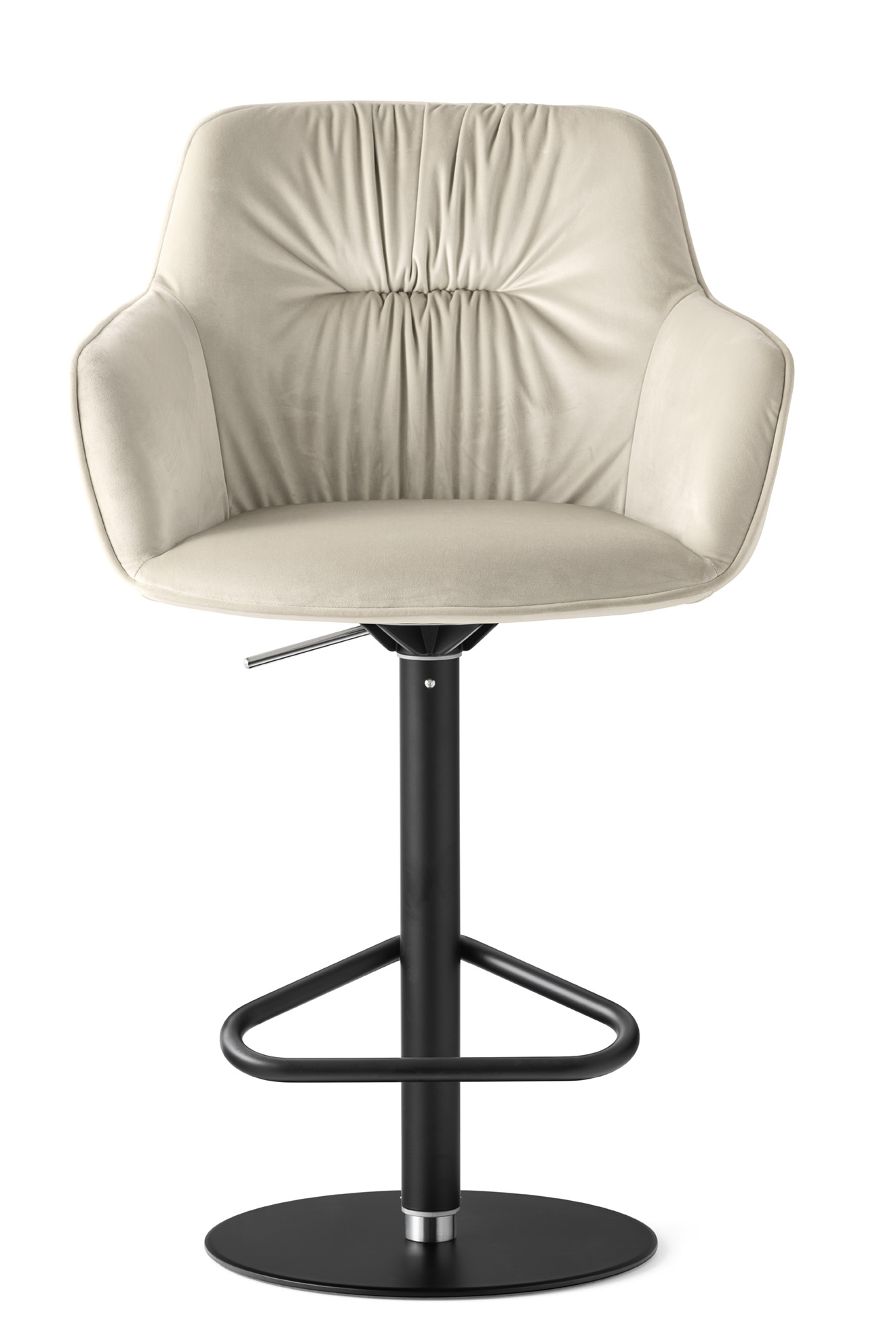 Der Cocoon-Hocker entstand mit der klaren Absicht, ein Modell zu schaffen, das an die Formen der Sessel der 60er Jahre erinnert, jedoch mit moderneren und aktuelleren Linien, großzügigen Abmessungen und Dicken, um den Sitz bequem und einladend zu machen. Die Ausführungen mit weichen und plissierten Stoffen unterstreichen den weichen und einhüllenden Effekt mit einem Hauch von Retro.