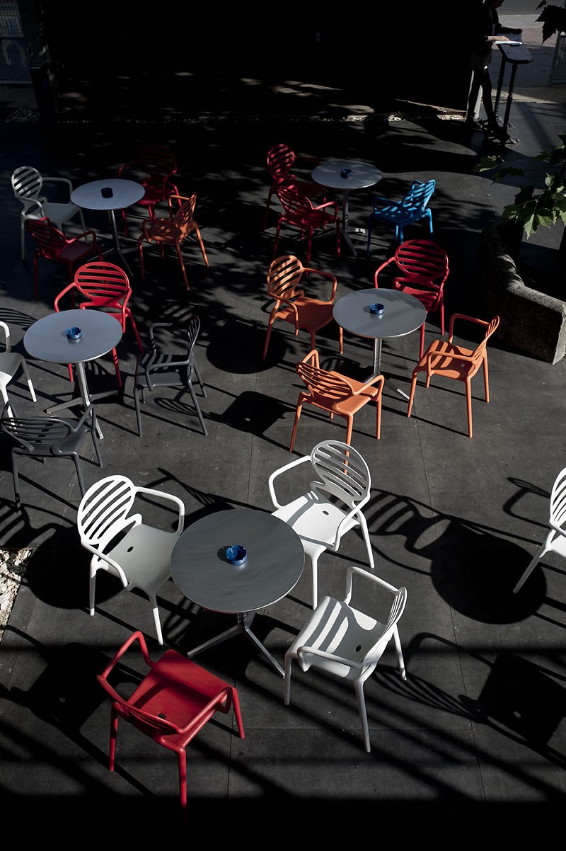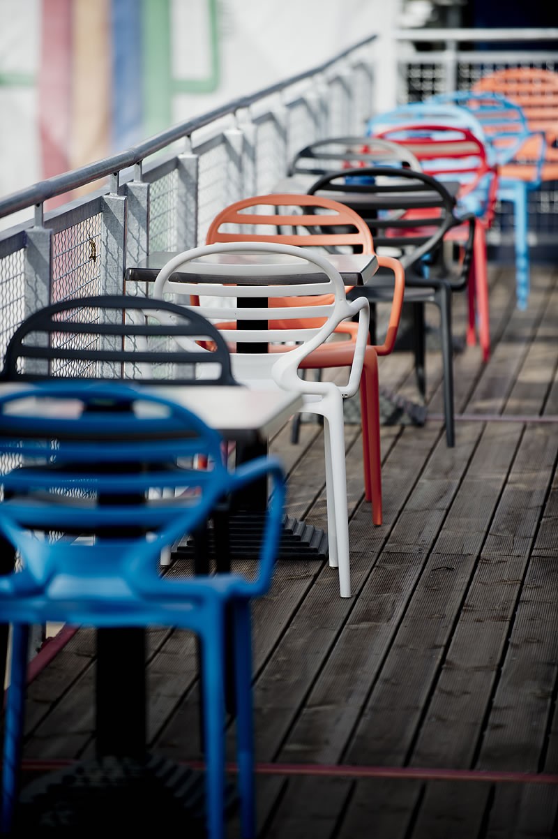 Rahmen aus glasfaserverstärktem Polypropylen, im Air-Molding-Verfahren spritzgegossen. In verschiedenen Farben erhältlich. Stapelbar. Für den Innen- und Außenbereich geeignet.