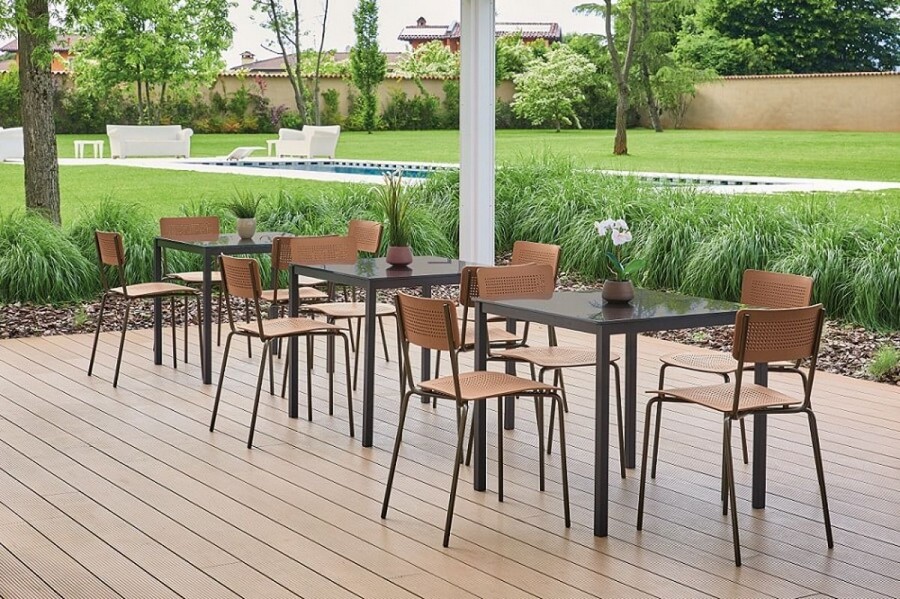 Der College-Stuhl hat ein lackiertes Stahlgestell und eine Sitzfläche aus Polypropylen. College wird aus innovativen Materialien hergestellt und ist in der Indoor- und Outdoor-Version erhältlich.