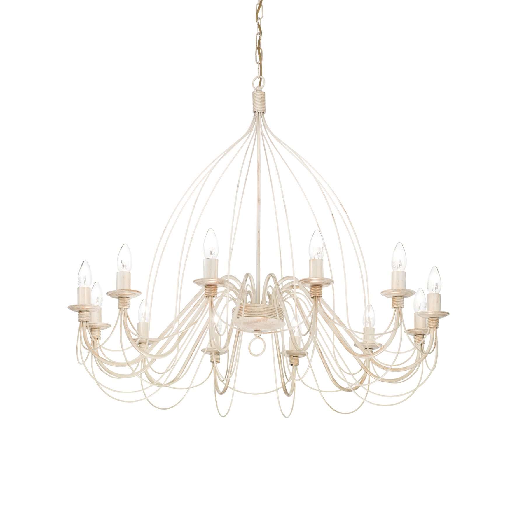Antiker weißer Corte SP12-Pendelleuchter von Ideal Lux mit einem vollständig handgefertigten Metallrahmen. Handbemaltes Finish mit Antikeffekt. Weiße Version. Leuchtmittel ausgeschlossen.