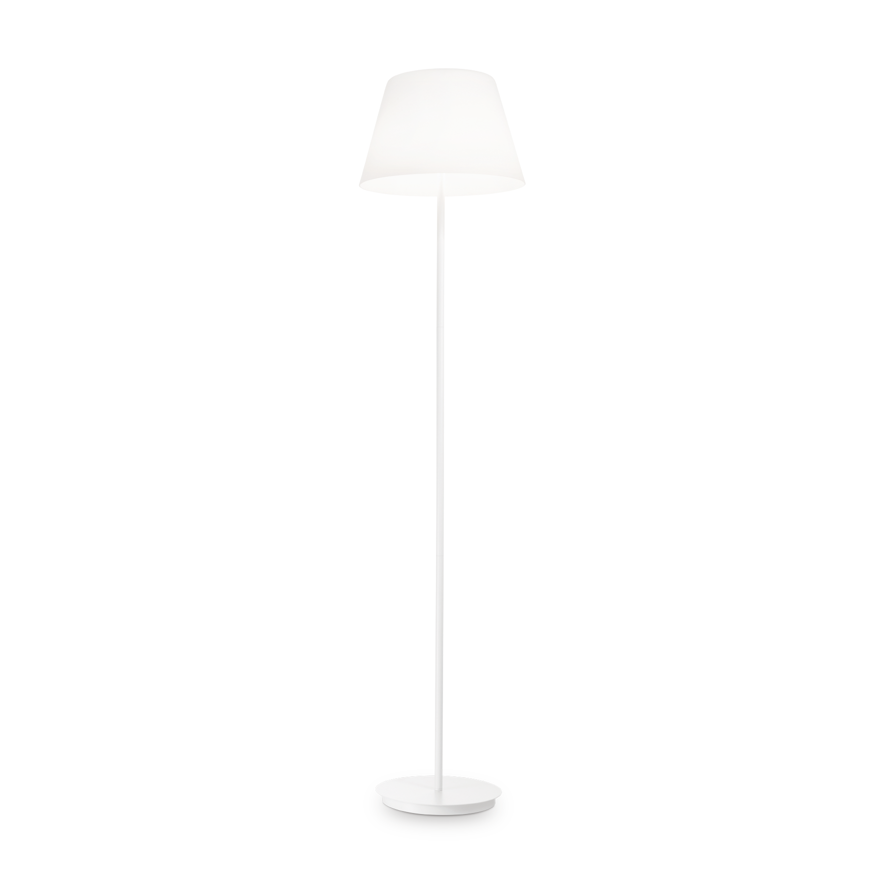 CYLINDER PT2 Stehleuchte von Ideal Lux mit mattweiß lackiertem Metallsockel. Diffusor aus weiß geschichtetem und geätztem mundgeblasenem Glas. Lampe mit integriertem Schalter. Leuchtmittel ausgeschlossen.