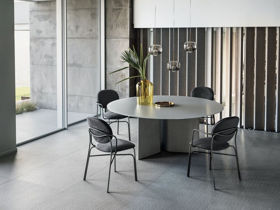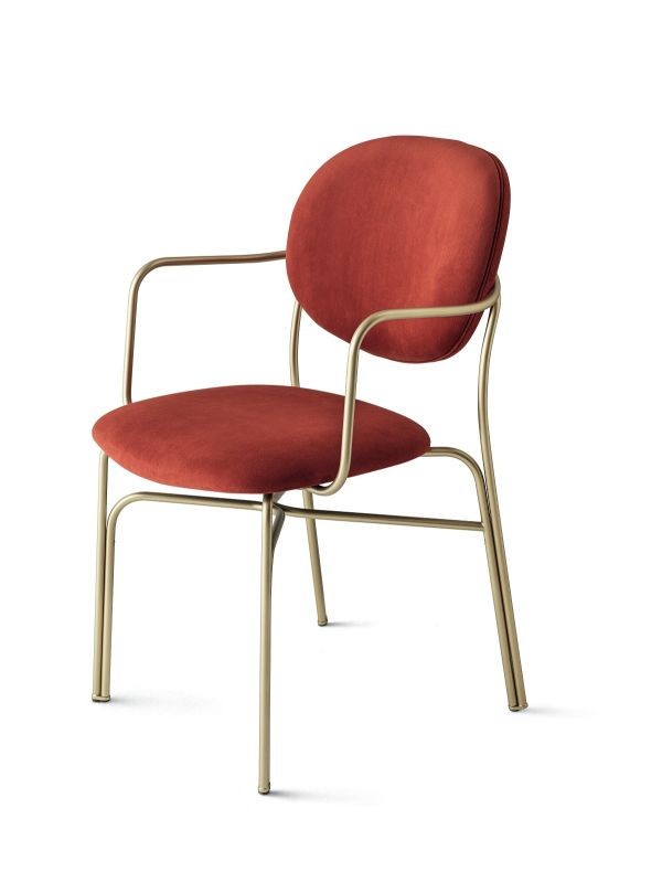 Stuhl mit oder ohne Armlehnen, Gestell aus lackiertem Stahl, gepolsterter Sitz und Polsterung in verschiedenen Ausführungen und Farben. Weiche Linien ziehen sich durch den Stuhl und unterstreichen die gesamte Persönlichkeit. Dieser Stuhl ist mit oder ohne Armlehnen erhältlich und kann in einer Vielzahl von Ausführungen getragen werden, die ihn zu einem Objekt mit maximalem Ausdruck machen.