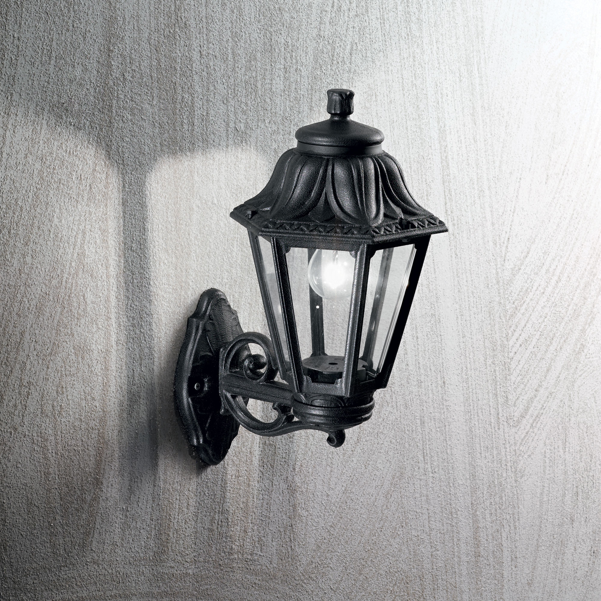 DAFNE AP1 Große schwarze Außenwandleuchte von Ideal Lux mit Hochleistungsharz-Leuchtkörper: korrosionsbeständig, Farben durch UV-Behandlung stabilisiert, beständig gegen Temperaturschwankungen von -60° C bis + 90° C. Diffusor aus vergilbungshemmendem Methacrylat. Glühbirne ausgeschlossen.