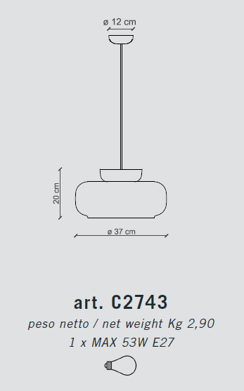 Lampe bestehend aus zwei Teilen: dem oberen Teil aus schalenförmiger Keramik und dem unteren Teil aus bemaltem und natürlichem Glas, das mit seiner leicht erhabenen kreisförmigen Erscheinung an den Bau von Stadien und Arenen erinnert. Daher der Name der Lampe, der sich auf das brasilianische Stadion schlechthin bezieht: Maracanà.