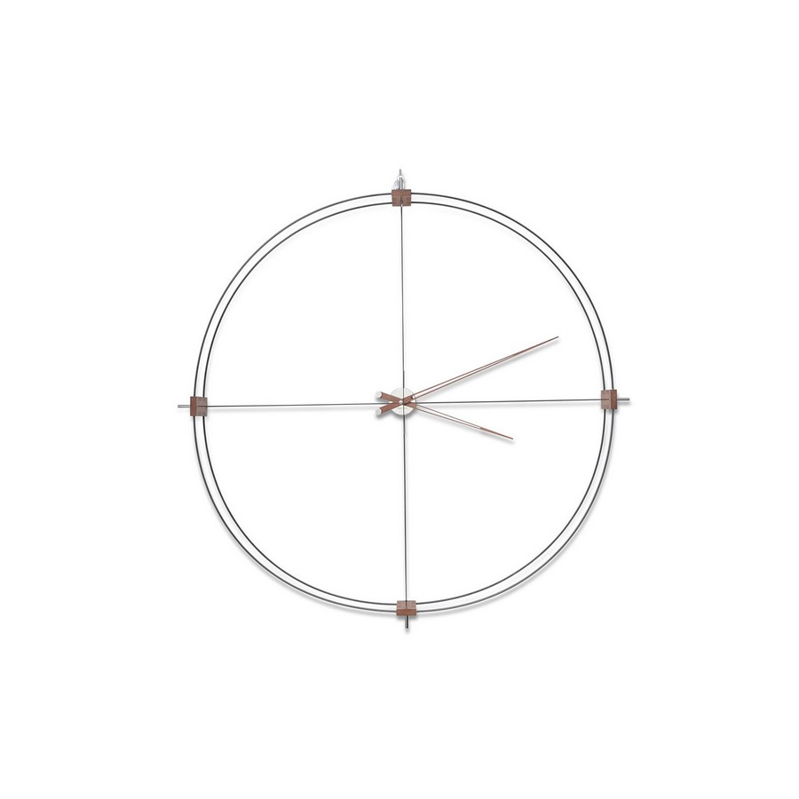 Delmori Clock ist eine Kreation von Nomon: ein führendes Unternehmen in der Herstellung von Uhren für das Innendesign. Das Designkonzept, das auf Innenuhren übertragen wird, geht über die einfache Anzeige der Zeit hinaus, berücksichtigt jedoch viele andere Faktoren: Produktgröße, Qualität der verwendeten Materialien, Betriebsmechanismen. Kreativität, Design und Technologie sind die drei Grundprinzipien dieses Unternehmens. Delmori ist die Uhr der spanischen Marke Nomon, entworfen von Josè Maria Reina, erhältlich in schwarzer oder weißer Glasfaser. Es hängt eine verchromte Stahlscheibe in einem luftigen Doppelkreis aus Glasfaser auf. Ein deutsches Präzisionsquarzwerk drückt die Hände der dünnen Walnusshände.