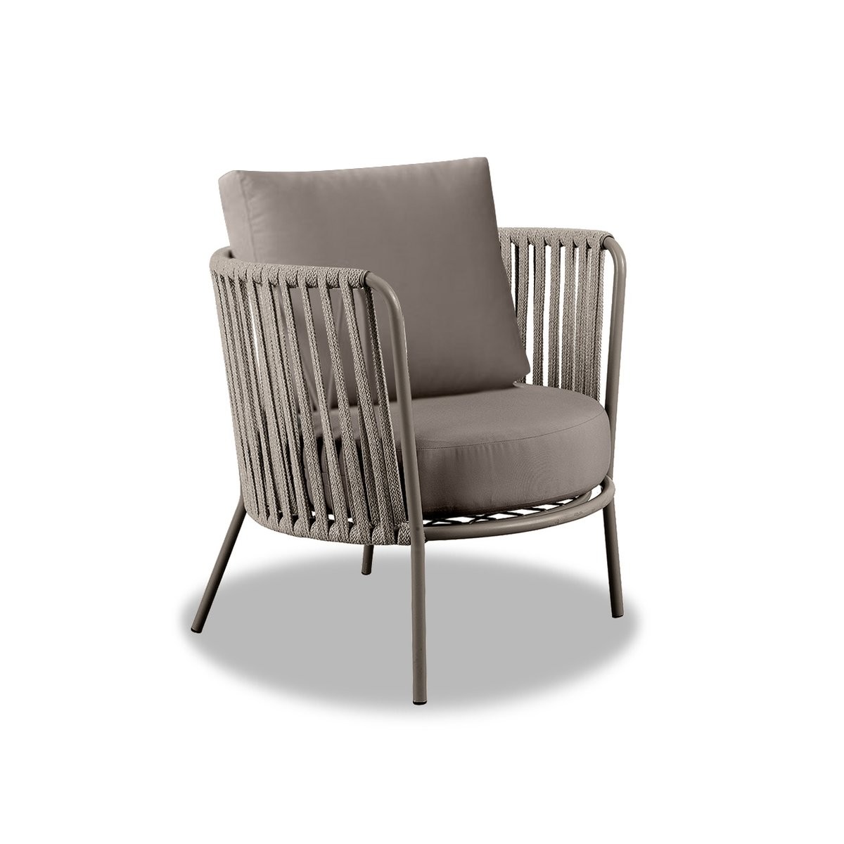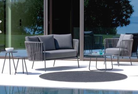 Eine Kollektion mit zeitgenössischem Geschmack, bei der die Verflechtung geometrischer Grundformen und essentieller Linien eine dynamische und funktionale Atmosphäre schafft. Das Wohnzimmer im Freien wird zu einem fließenden und manchmal traumhaften Raum, der sich perfekt in jede Umgebung einfügt.