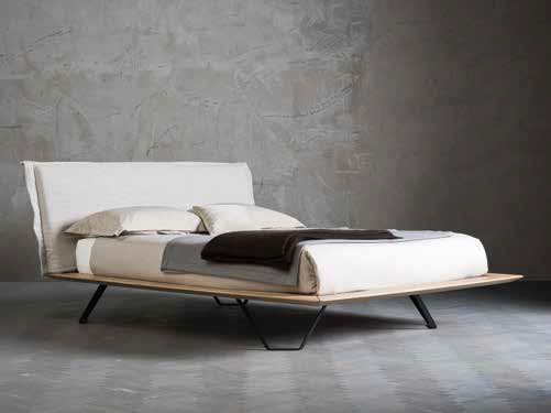 Die Struktur des Bettrahmens besteht aus massiver europäischer Eiche mit einem Querschnitt von 150 x 40 mm, auf der die Strukturbasis mit Metallrahmen und Birkenlatten befestigt ist. Das hölzerne Kopfteil besteht aus massiven europäischen Eichenholzbrettern. Das gepolsterte Kopfteil hat einen inneren Kern aus Buchensperrholz, der mit Schaumstoff und Polyesterflocken geformt ist und mit abnehmbarem Stoff, Leder oder Kunstleder überzogen ist. Bei der Lederversion verfügt der Bezug über 4 vertikale Nähte. Vinylklebstoffe und Harnstoffharze auf Wasserbasis, die den UNI-EEC-Vorschriften entsprechen. Der Poliedro-Fuß besteht aus 50/10 dickem gebeiztem Blech und einer 40x10 gebogenen Laminatplatte. Der Trapezio-Fuß besteht aus einem Metallrohrprofil. 80x30. Der V-förmige Fuß besteht aus 50/10 dickem gebeiztem Blech und 12 mm gebogenem Rundeisen. Alle Füße haben eine pulverbeschichtete Oberfläche mit Eisenarbeiten im Industrie-Stil.