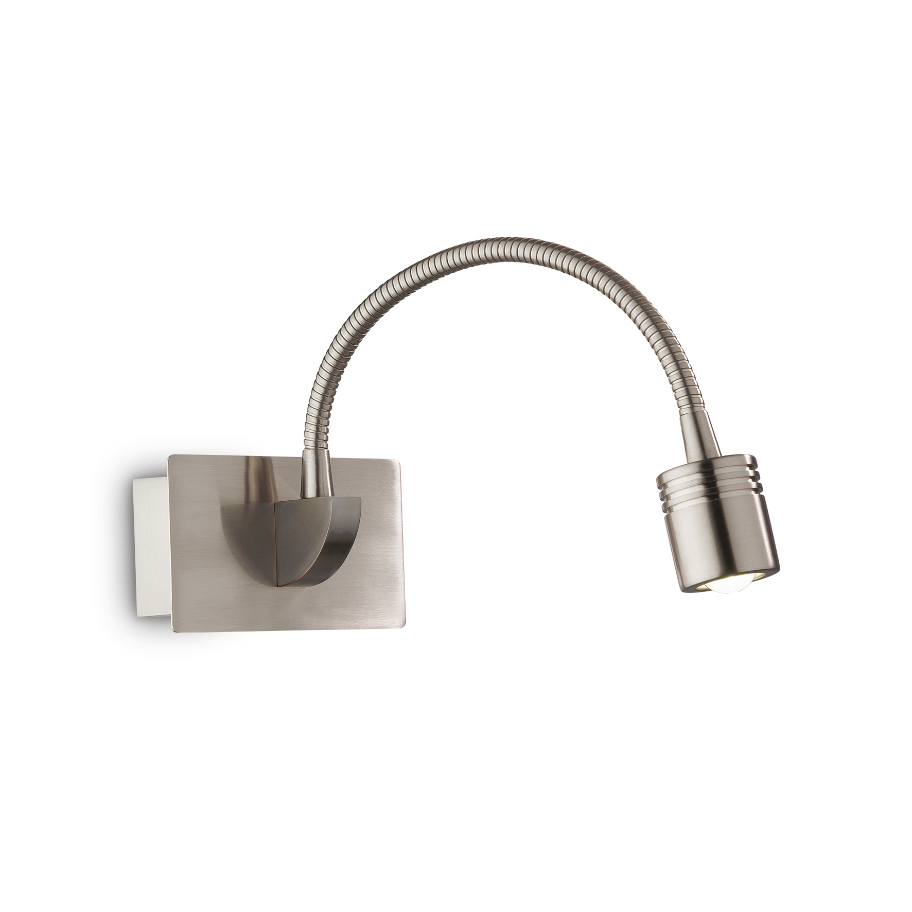 DYNAMO AP Nickel-Wandleuchte von Ideal Lux mit Metallrahmen und flexiblem Arm mit Finish in Nickel erhältlich. Diffusor nach Wunsch verstellbar. Ausgestattet mit Schalter an der Basis. LED-Lichtquelle im Lieferumfang enthalten. Lampe mit integriertem Schalter.