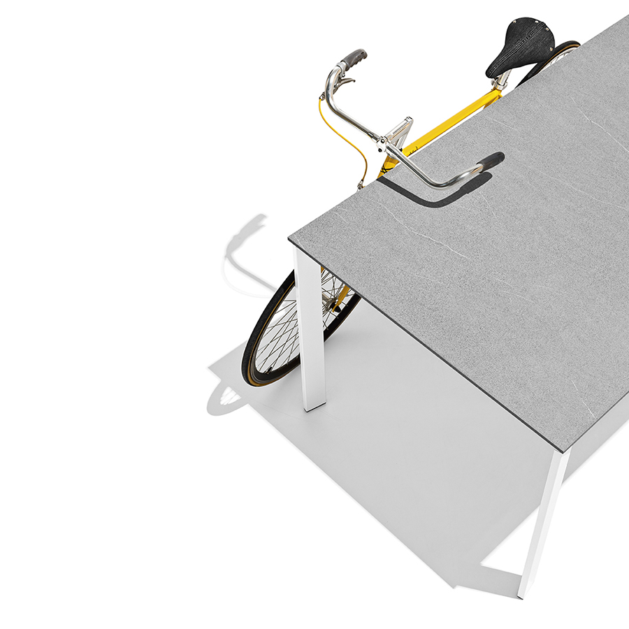 Die Struktur kann entweder vollständig aus Metall oder mit Beinen aus Buche oder Esche und der Unterbaubox aus Aluminium (verschiedene Ausführungen zur Auswahl) sein.