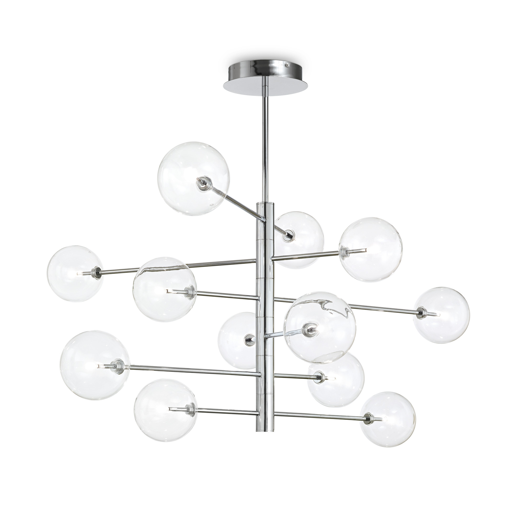 EQUINOXE SP12 Chrom-Hängeleuchter von Ideal Lux mit Metallrahmen mit Chromoberfläche. Transparente Diffusoren aus mundgeblasenem Glas. Glühbirnen im Lieferumfang enthalten.