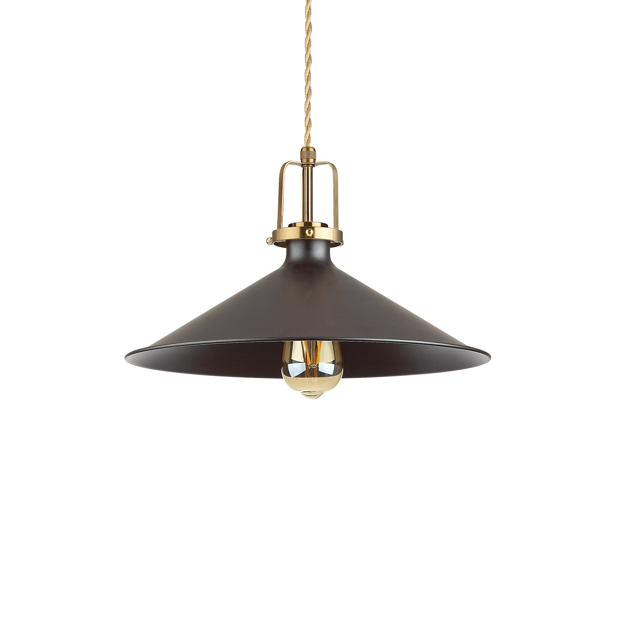 Schwarze Hängeleuchte ERIS-4 SP1 von Ideal Lux mit Metallrahmen mit mattschwarz lackierter Rosette und Diffusor, Details in satiniertem Goldfinish. Geflochtenes Elektrokabel mit Stoffummantelung. Glühbirne ausgeschlossen.