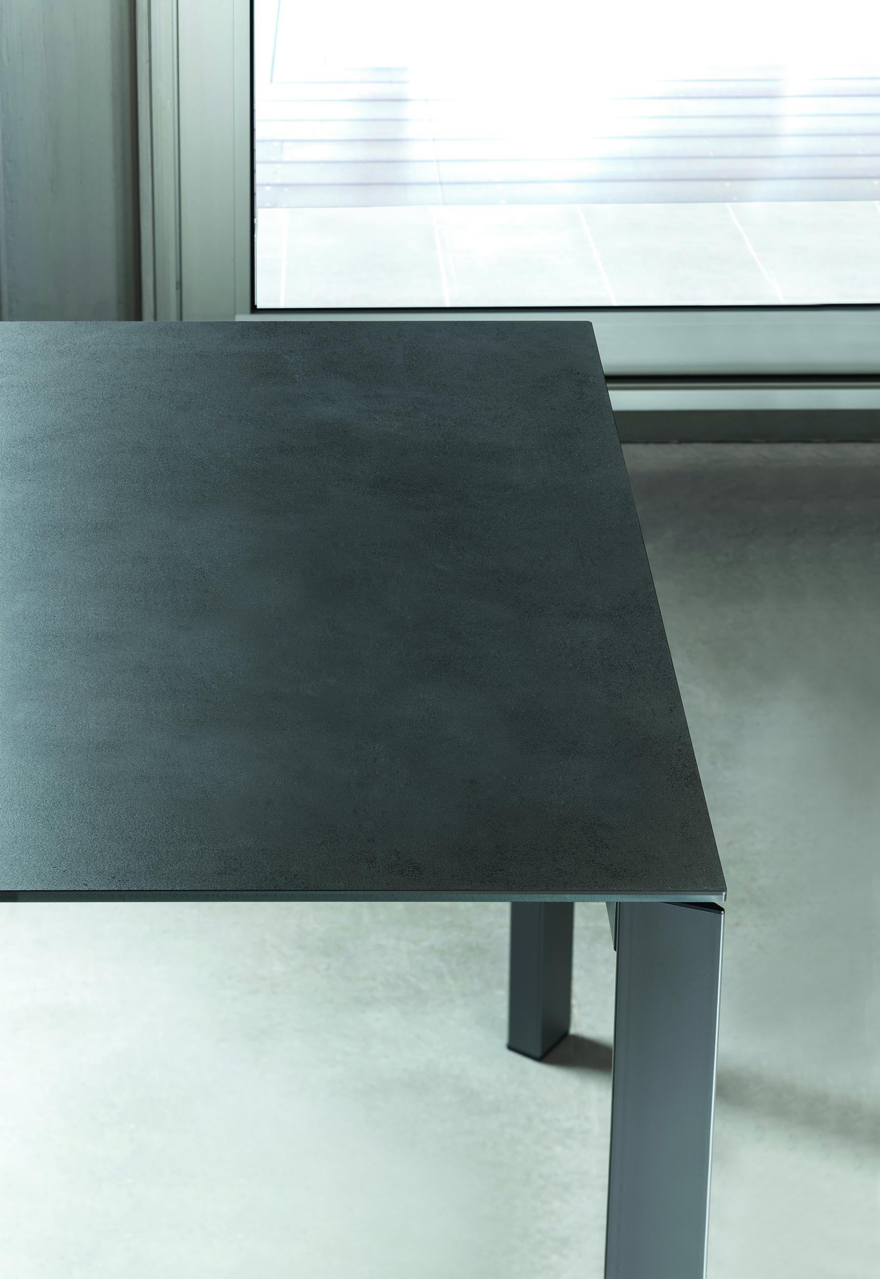 Der ausziehbare Tisch Dublin   von Bontempi ist ein Tisch mit modernem und zeitgenössischem Design, kombiniert mit einer großen Auswahl an Größen und Ausführungen, die ihn in jeden Wohn- und Küchenkontext integrieren. Die Tischplatte ist erhältlich in: Glas, Melamin, SuperCeramic   und SuperMarmor . Die Verlängerungen des Dublin Tisches werden meist passend zur Tischplatte gefertigt. Bei den Varianten aus Glas, SuperKeramik und SuperMarmor besteht die Verlängerung aus matt lackiertem Holz. Das Gestell besteht aus lackiertem Stahl.