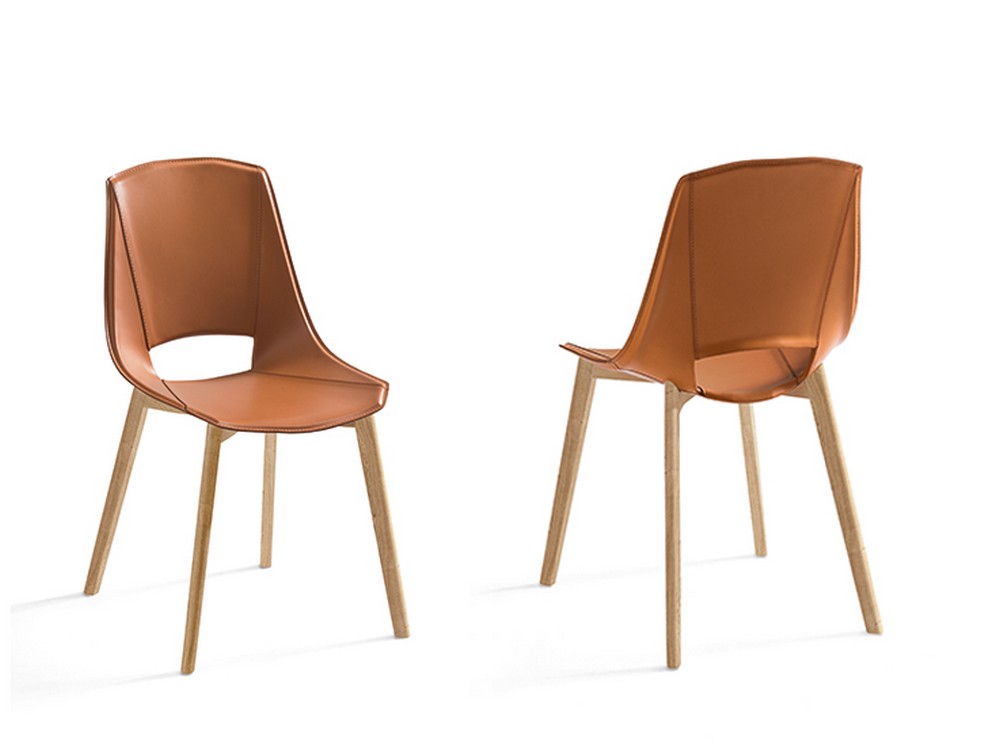 Point 5 Eva Stuhl aus Polypropylen oder Leder mit Beinen aus Eichenholz