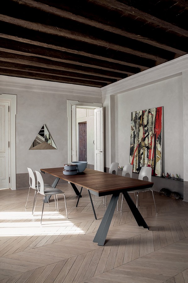 Der Ventaglio-Konsolentisch von Tonin Casa ist ein moderner Tisch mit einem mutigen Design, dessen Sockel an die Form eines Ventilators erinnert. Die Basis besteht aus lackiertem Metall und ist in den Farben Mattweiß, Mattschwarz und Bronzestein erhältlich. Die Oberseite ist in Holzeffekt in den Oberflächen: Mattweiß, Canaletto-Walnuss im Relief, dunkle Eiche im Relief. Die geschlossene Konsole misst cm L.100 x D.50 x H. 75 und ist in der offenen Version auf 200 cm erweiterbar oder in der offenen Version auf 300 cm mit drei bzw. fünf Verlängerungen erweiterbar.