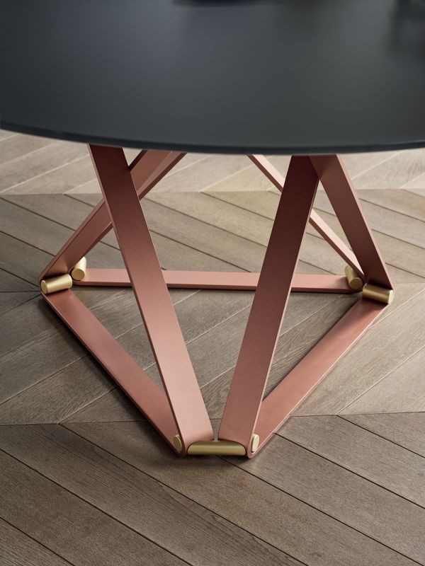 Die Struktur zeichnet sich durch geometrische Linien aus, die das Thema des Tisches mit gekreuzten Beinen aufgreifen und es mit Leichtigkeit und wertvollen Details neu interpretieren, die seine starke Persönlichkeit unterstreichen. Der Tisch nimmt dann verschiedene Gesichter an und kann in jeden Kontext eingefügt werden, je nachdem, ob Sie die Platte aus Holz, Glas, SuperMarmor oder SuperKeramik wählen: so viele mögliche Deklinationen, die seine große Vielseitigkeit beweisen.