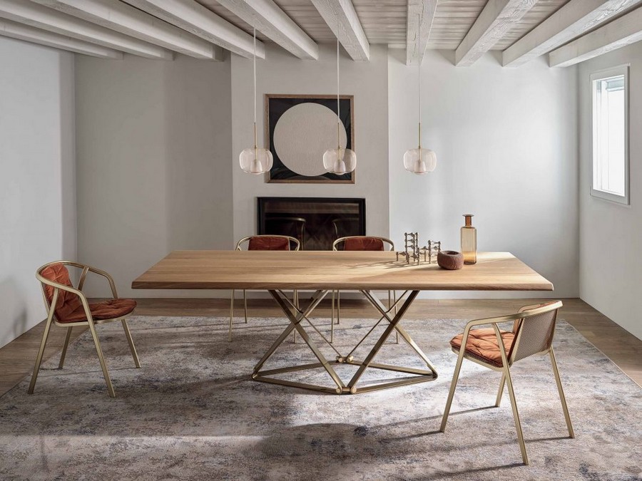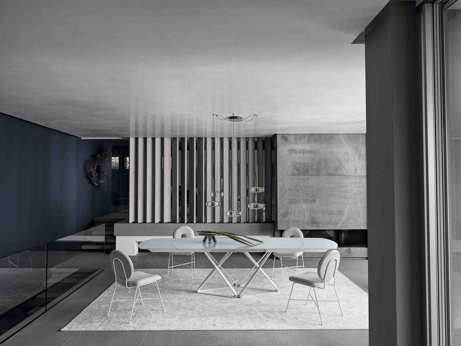 Der Tisch erhält dann verschiedene Gesichter und kann in jeden Kontext eingefügt werden, je nachdem, ob Sie die Platte aus Holz, Glas, SuperMarmor oder SuperKeramik wählen: viele mögliche Variationen, die seine große Vielseitigkeit unter Beweis stellen.