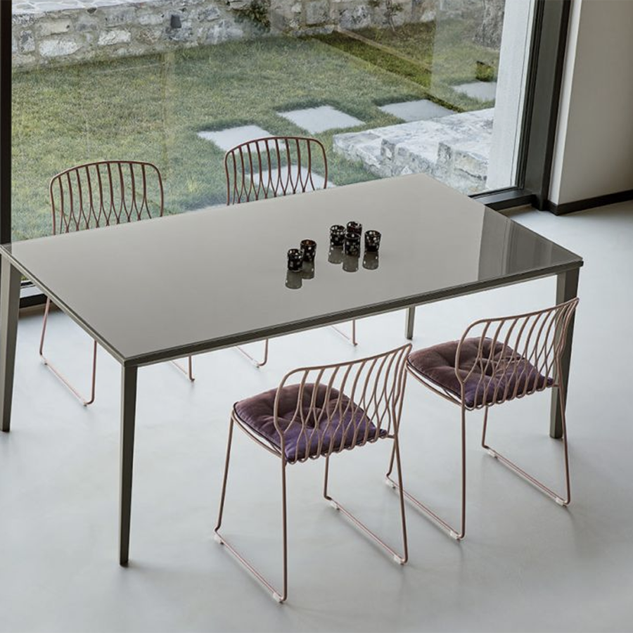 Freak-Stuhl von Bontempi mit einer Struktur vollständig aus lackiertem Stahl, erhältlich in verschiedenen Ausführungen für den Innen- und Außenbereich mit optionalem Sitzkissen. Er ist stapelbar und hat einen eleganten Stil. Er eignet sich gut, um Ihren Innenräumen wie Esszimmern oder Wohnbereichen einen Hauch von Klasse zu verleihen.