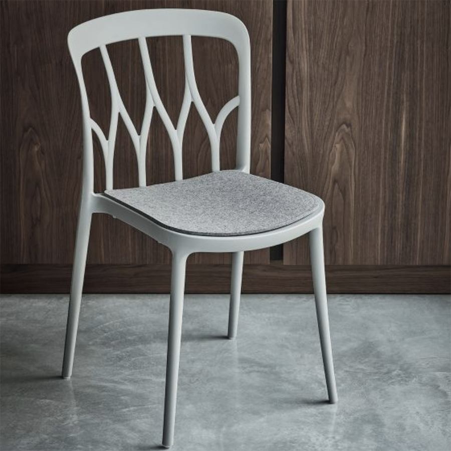 Stapelbarer Stuhl mit oder ohne Armlehnen, integrierte Struktur aus Polypropylen und recycelbarem Fiberglas in verschiedenen Farben. Für den Innen- und Außenbereich konzipiert.