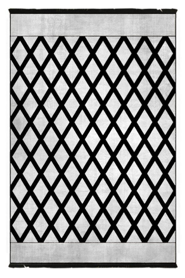 Giotto Teppich von Tonin Casa ist ein Teppich mit einer eleganten und modernen Linie, die eine Diamantverzierung aus Industriegarn zeigt. Mit Fransen ist dieser Teppich in der schwarzen und weißen Version erhältlich