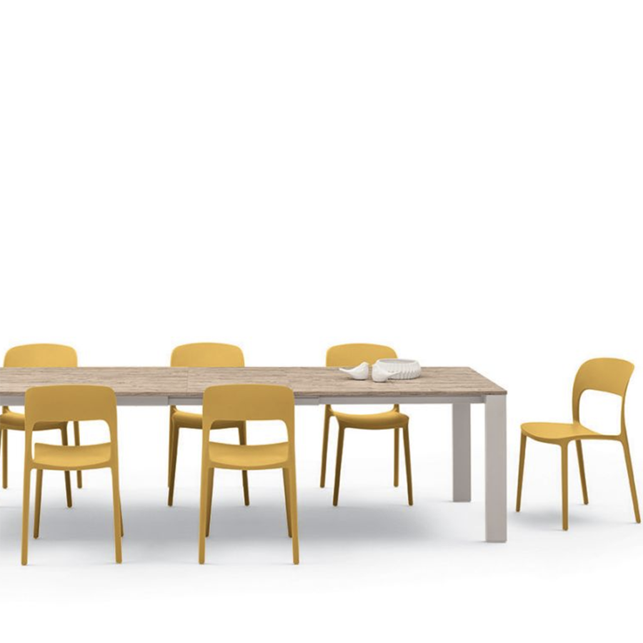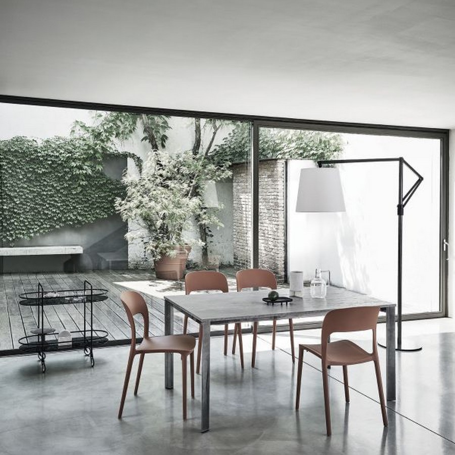 Der stapelbare Stuhl Gipsy von Bontempi besteht aus Polypropylen und recycelbarem Fiberglas und ist in zahlreichen Farben erhältlich.