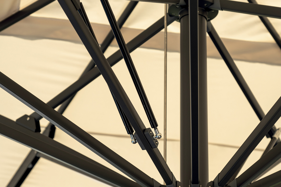 Teleskopierbare Mittelstange zum einfachen Öffnen über Tischen und Möbeln